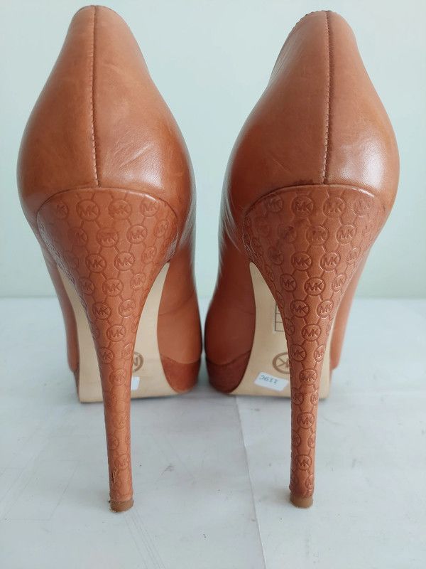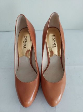 19C* Superbes escarpins bruns en cuir MICHAEL KORS. Pointure 9 M soit 40. Talons de 13 cm avec plateforme de 3 cm. Mis 2 fois.