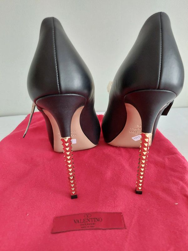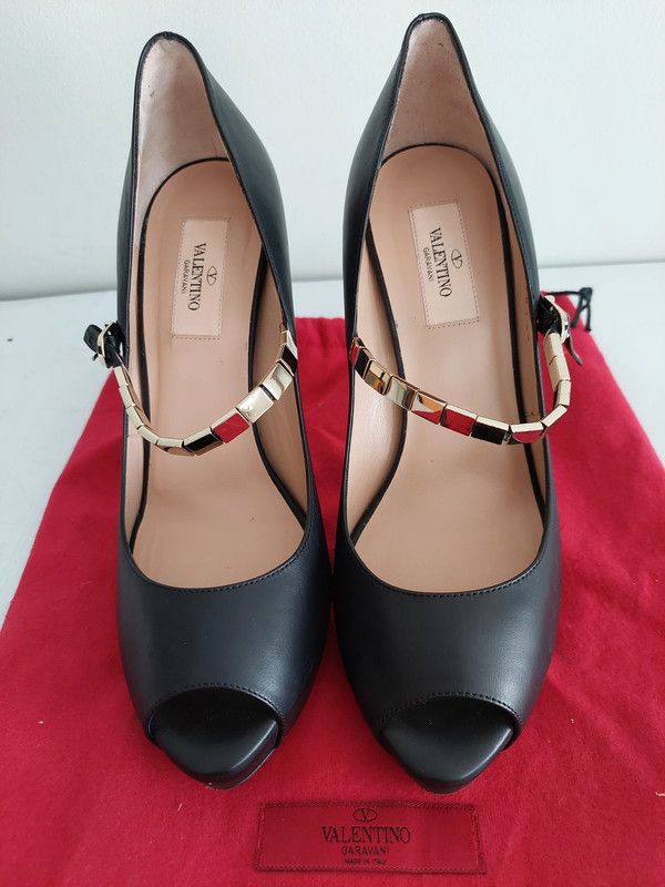 116C* superbes escarpins noirs peep toe authentiques et ultra sexy de la marque de luxe VALENTINO GARAVANI. Cuir int, ext et semelles. Pointure 39. Talons de 12 cm avec rehausse de 3 cm. Comme Neufs. Prix achat de 565 €.