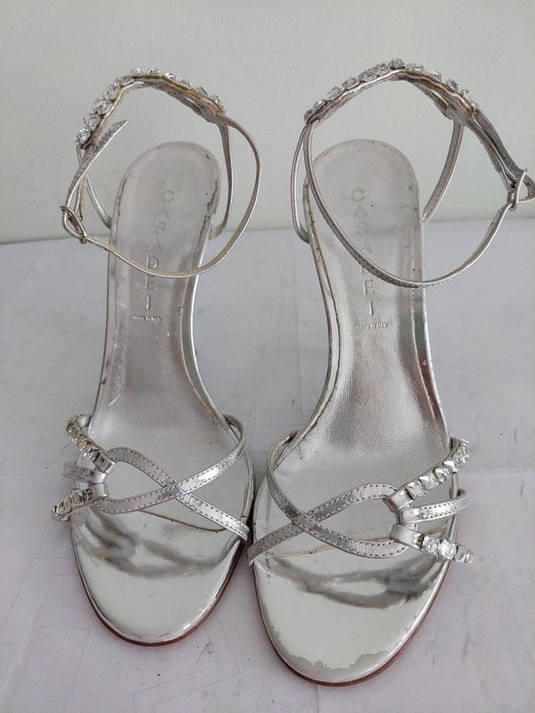 105C* magnifiques sandales argentées de la marque italienne de luxe CASADEI. Pointure 38. Qualité extra, 100% cuir ! Talons de 11 cm. Mises 1 fois, très chères à l'achat.