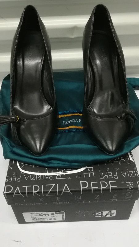 611A* superbes escarpins de couleur noire de la marque de luxe PATRIZIA PEPE. Pointure 39. Talons de 9 cm. Extra qualité, tout en beau cuir et à peine mis 2 fois, état top! Prix achat de 310 €.