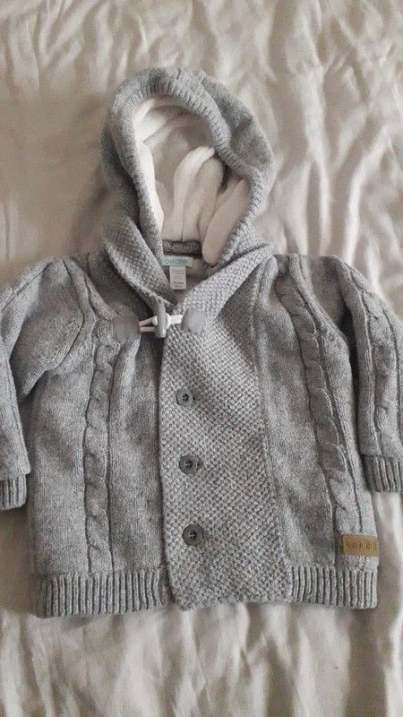 Excellent état comme neuf. Entièrement molletonné bras et capuche compris, donc très chaud. Tissu très épais. Capuche amovible avec boutons. Jolies torsades. Col montant. Extensible