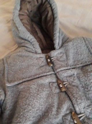 Excellent état. Très épais et chaud. Entièrement doublé manches et capuche comprises. Excellente qualite de tissu, effet éponge comme sur photos. Couleur gris/bleuté. Hauteur 43cm