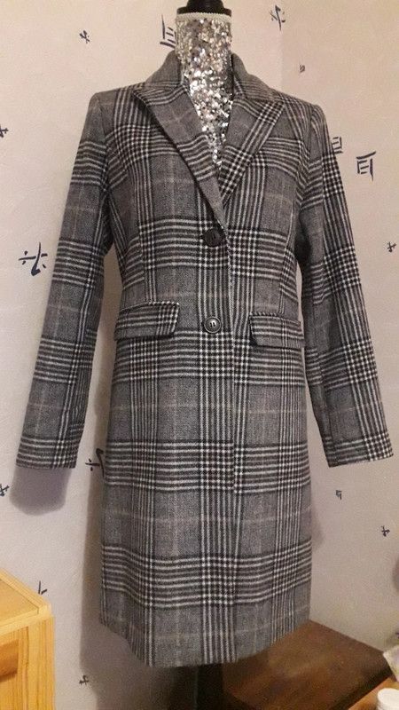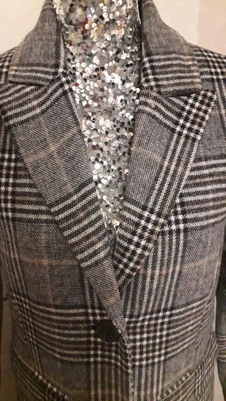 Magnifique manteau gris à rayures noires/blanches 23% laine