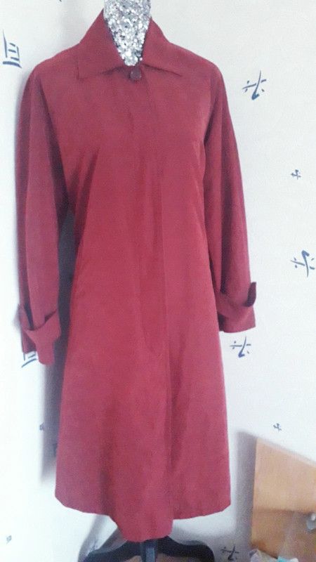 Magnifique long manteau suédine mi-saison couleur Framboise