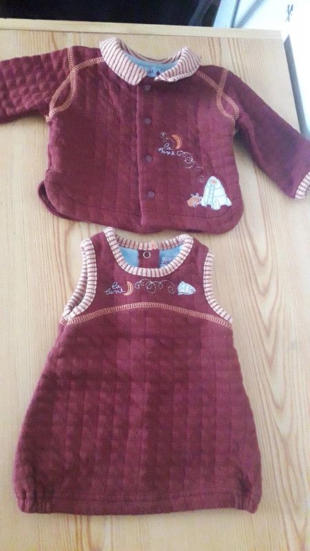 Joli petit ensemble très doux, robe et gilet 80% coton