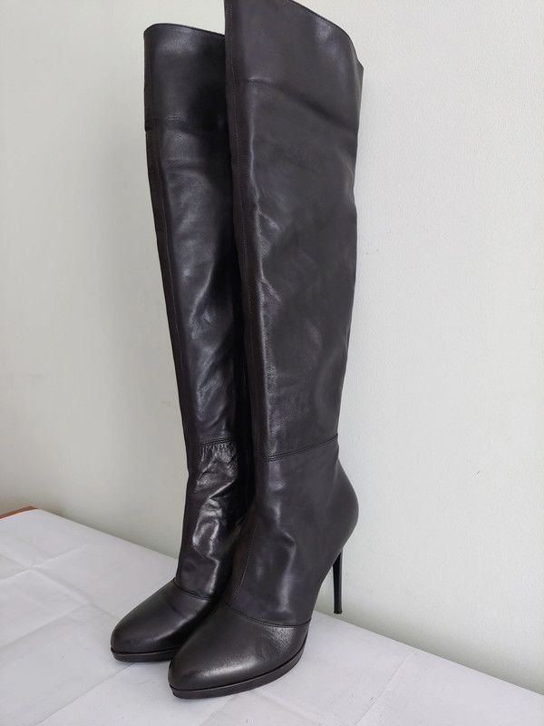 66C* Magnifiques hautes BOTTES en cuir souple de couleur noire de chez IDEA SHOES. Pointure 40. Talons de 11 cm avec plateforme de 1 cm - hauteur totale de 61 cm. Largeur mollet de 18 cm. Chères à l'achat. Mises 2 fois, excellent état, juste petits défauts aux talons, à peine visibles!