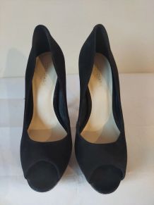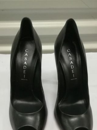 349A* CASADEI. Sublimes escarpins couleur noire peep toe - tout en cuir de qualité exceptionnelle italienne ! Pointure 38,5. Talons de 11,5 cm. Super confortables. Totalement Neufs. Prix boutique de luxe de 695 € !