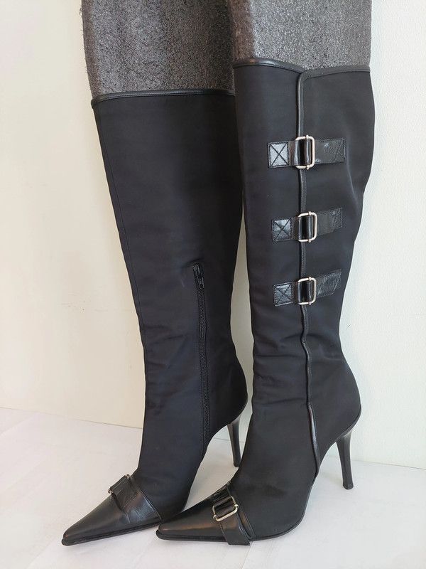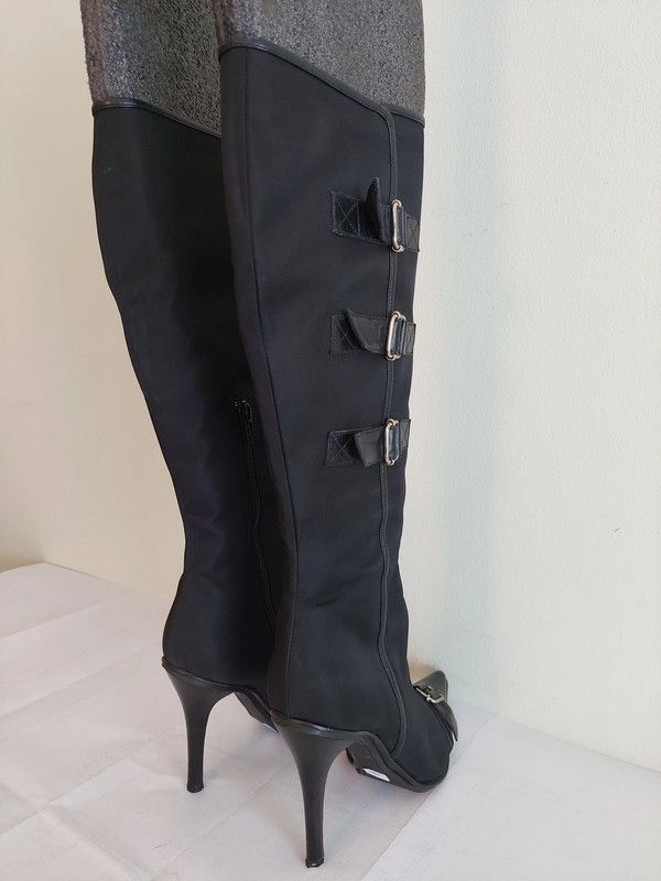 38C* Sexy BOTTES de couleur noire de la marque italienne de luxe CASADEI. Pointure 37. Talons de 10 cm - hauteur totale de 46 cm. Largeur mollet de 16 cm. Très très chères à l'achat. Mises 3 fois, excellent état.