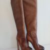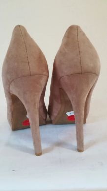 19C* superbes sandales high heels de la marque de luxe Sergio Rossi, made in italy. Authentiques! Tout cuir. Couleur ocre. Pointure 38 1/2. Talons de 14cm avec plateforme de 3,5 cm. Mises 5 fois.