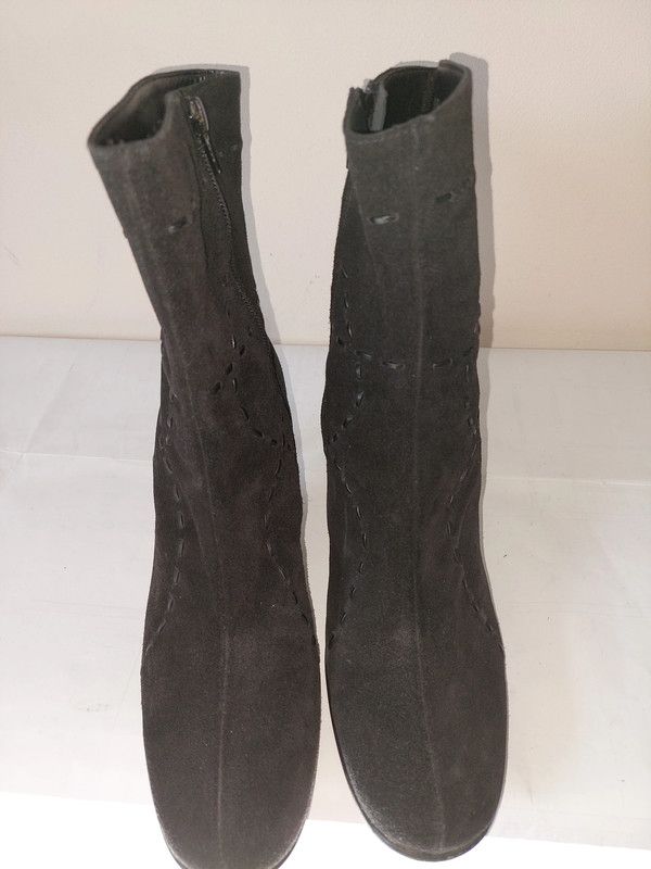 966B* superbes boots de couleur noire tout en cuir de la marque Ana Bonilla. Pointure 39,5. Talons de 7 cm. Hauteur totale de 25 cm. Mis 3 fois
