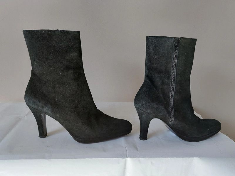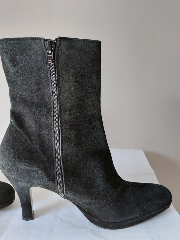 963B* superbes boots de couleur noire tout en cuir de la marque de luxe Wagram. Pointure 41. Talons de 9 cm. Hauteur totale de 26 cm. Mis 3 fois et très chers à l'achat.