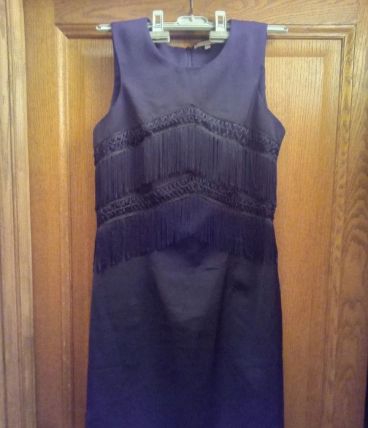 Marque : Manosque, robe de style classique avec un coté années folles avec des franges typiques des robes de charleston . En très bon état