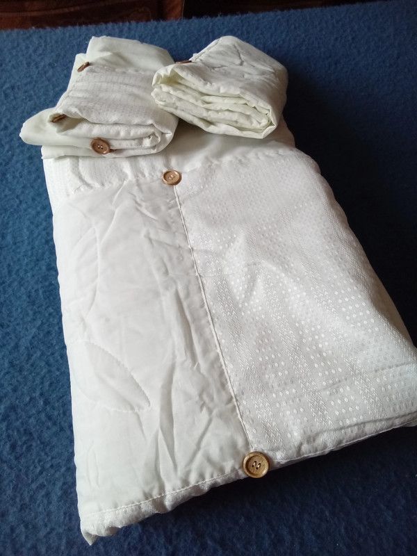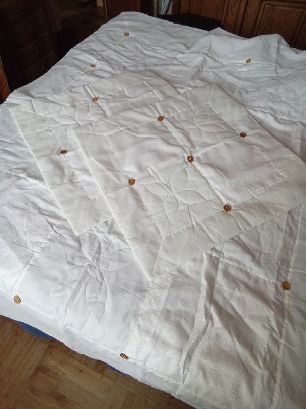 Bouti, Dessus de lit + 2taies - boutons bois - années 80