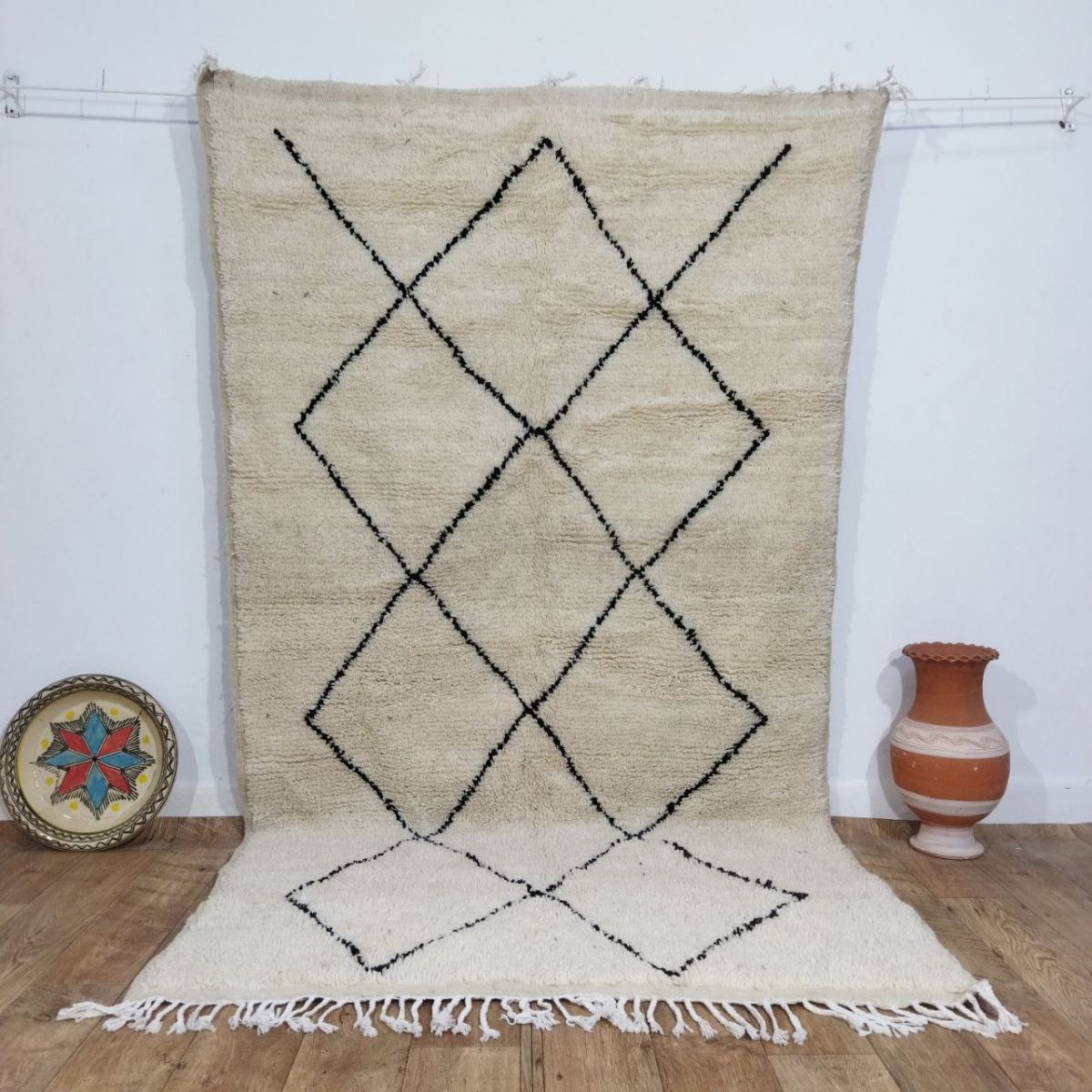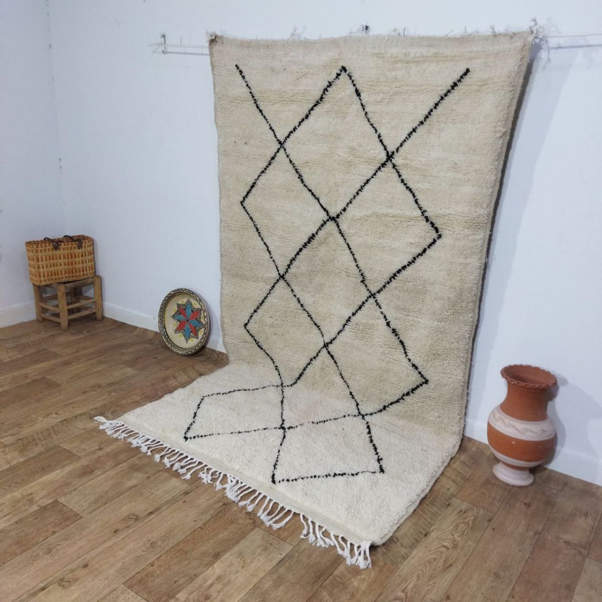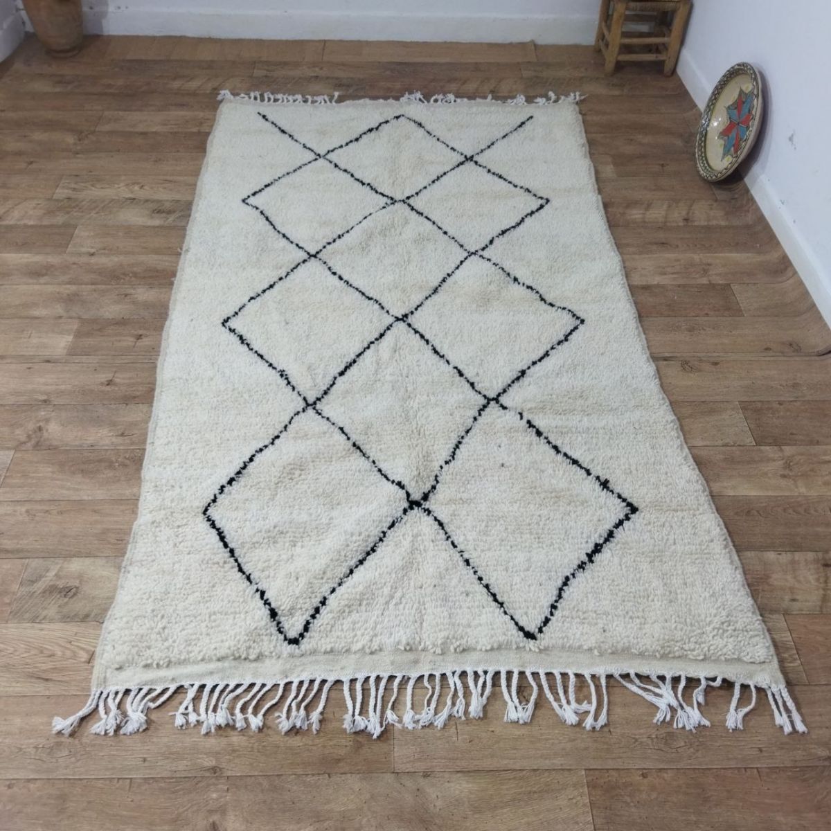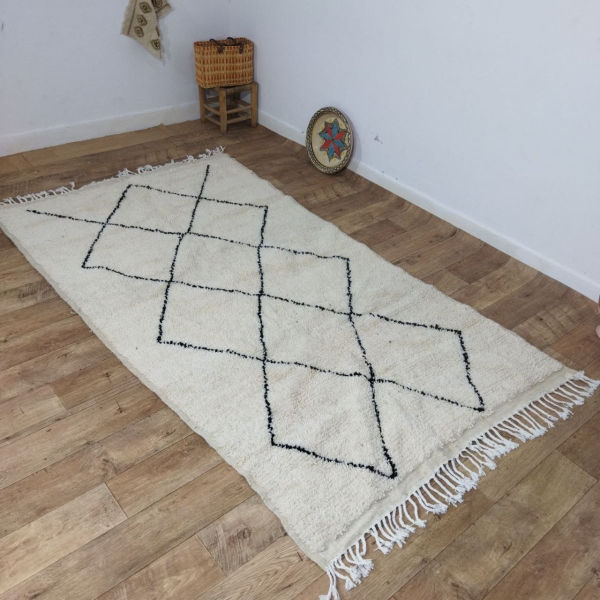 Tapis traditionnel marocain en laine, tissé à la main, qui perdurera pendant des années. Porteur d'art, d'histoire, de douceur et d'élégance, il s'intègrera harmonieusement à tous les styles de décoration, apportant une touche ethnique et chaleureuse à votre intérieur. Nous utilisons les meilleures techniques de tissage pour nos tapis, qui sont confectionnés à partir de 100% de laine. Nous entretenons une collaboration directe avec les artisans, car il nous tient à cœur de comprendre leur savoir-faire, d'apprendre la symbolique de leurs créations, puis de la partager avec vous à travers bohowool. Chaque tapis est unique et reflète la vie du tisserand qui l'a façonné. N'hésitez pas à nous indiquer si vous préférez une autre taille, une combinaison de couleurs ou un motif particulier. Si vous êtes intéressé par un tapis de dimensions différentes, nous pouvons le confectionner pour vous dans les plus brefs délais. Nos tapis sont expédiés depuis le maroc, et les frais de douane sont à la charge des clients. Nous avons besoin de 3 à 5 jours pour traiter les commandes, et les délais de livraison varient entre 4 et 9 jours. Faites l'acquisition d'un morceau d'art et de tradition marocains pour votre intérieur, tout en soutenant nos artisans talentueux." n'hésitez pas à me demander si vous avez besoin de plus d'informations ou de modifications supplémentaires !.
