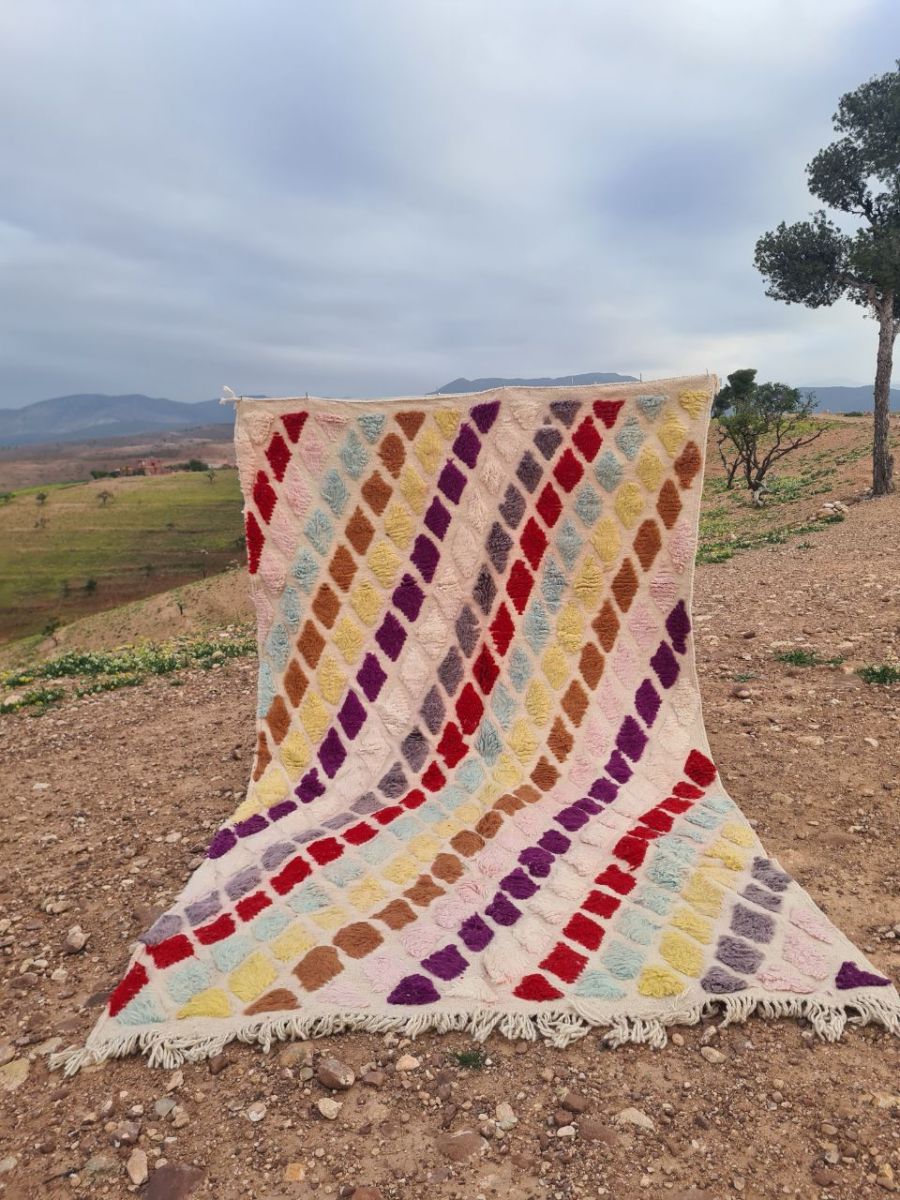 Tapis traditionnel marocain en laine, tissé à la main, qui perdurera pendant des années. Porteur d'art, d'histoire, de douceur et d'élégance, il s'intègrera harmonieusement à tous les styles de décoration, apportant une touche ethnique et chaleureuse à votre intérieur. Nous utilisons les meilleures techniques de tissage pour nos tapis, qui sont confectionnés à partir de 100% de laine. Nous entretenons une collaboration directe avec les artisans, car il nous tient à cœur de comprendre leur savoir-faire, d'apprendre la symbolique de leurs créations, puis de la partager avec vous à travers bohowool. Chaque tapis est unique et reflète la vie du tisserand qui l'a façonné. N'hésitez pas à nous indiquer si vous préférez une autre taille, une combinaison de couleurs ou un motif particulier. Si vous êtes intéressé par un tapis de dimensions différentes, nous pouvons le confectionner pour vous dans les plus brefs délais. Nos tapis sont expédiés depuis le maroc, et les frais de douane sont à la charge des clients. Nous avons besoin de 3 à 5 jours pour traiter les commandes, et les délais de livraison varient entre 4 et 9 jours. Faites l'acquisition d'un morceau d'art et de tradition marocains pour votre intérieur, tout en soutenant nos artisans talentueux." n'hésitez pas à me demander si vous avez besoin de plus d'informations ou de modifications supplémentaires !.