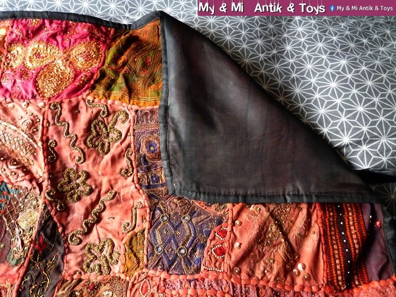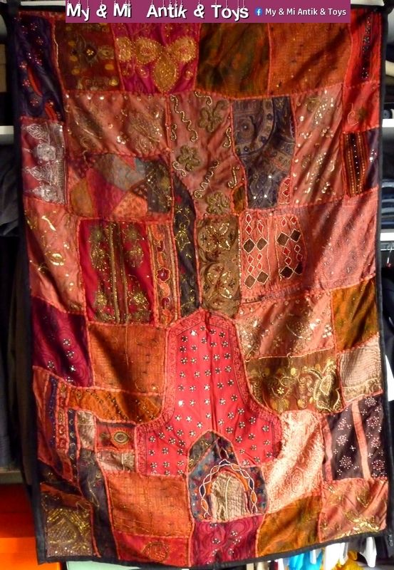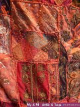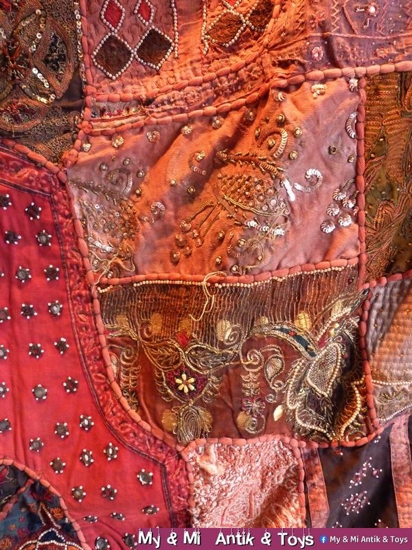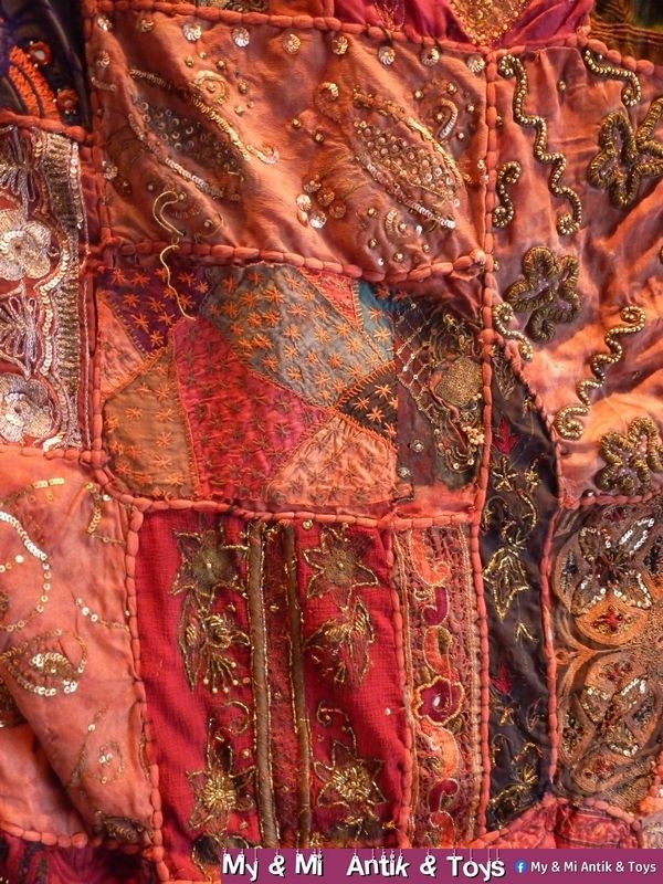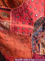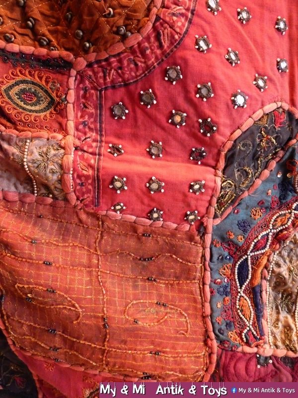 Elle est brodé de fils sur d'anciens tissus, incrusté de miroirs et de paillettes