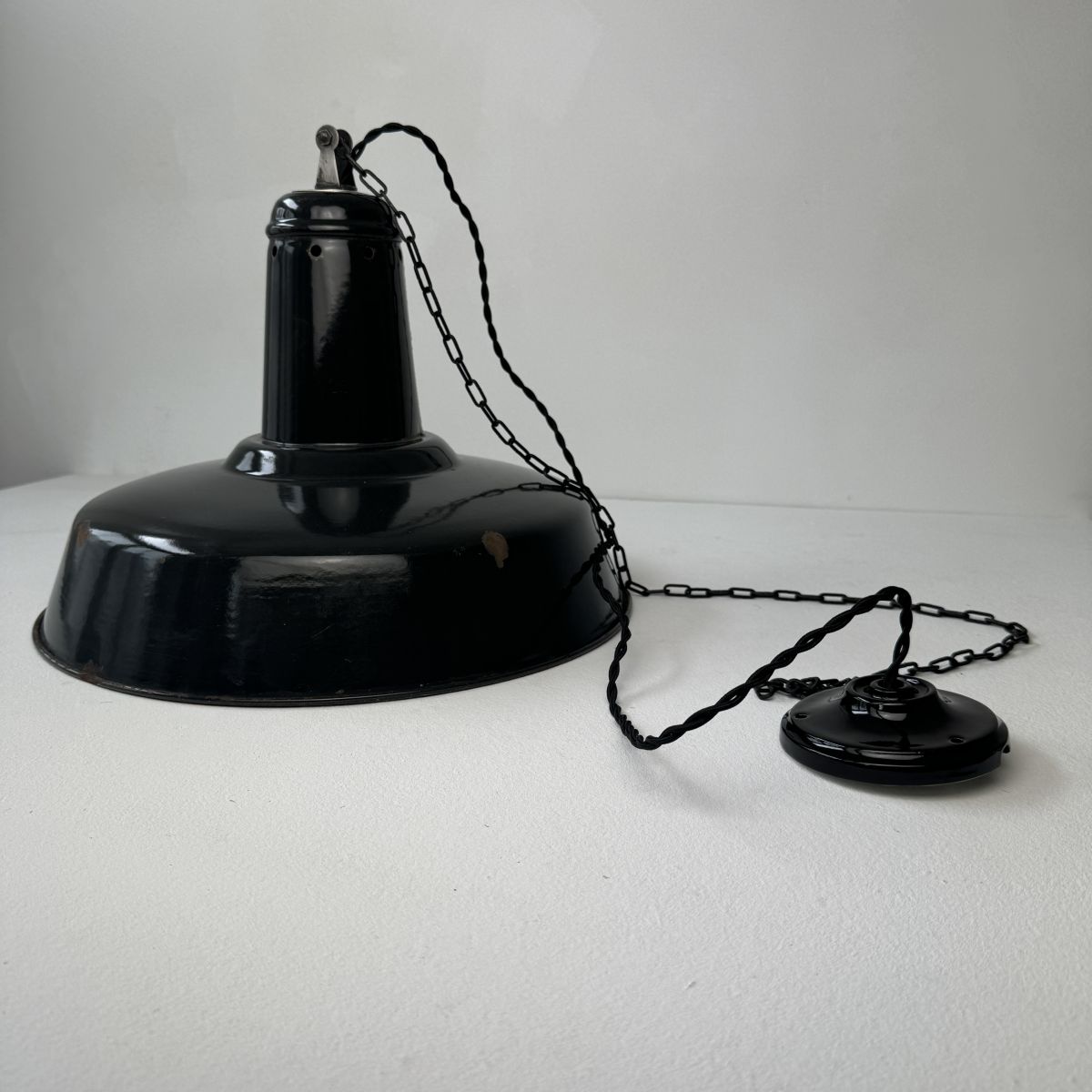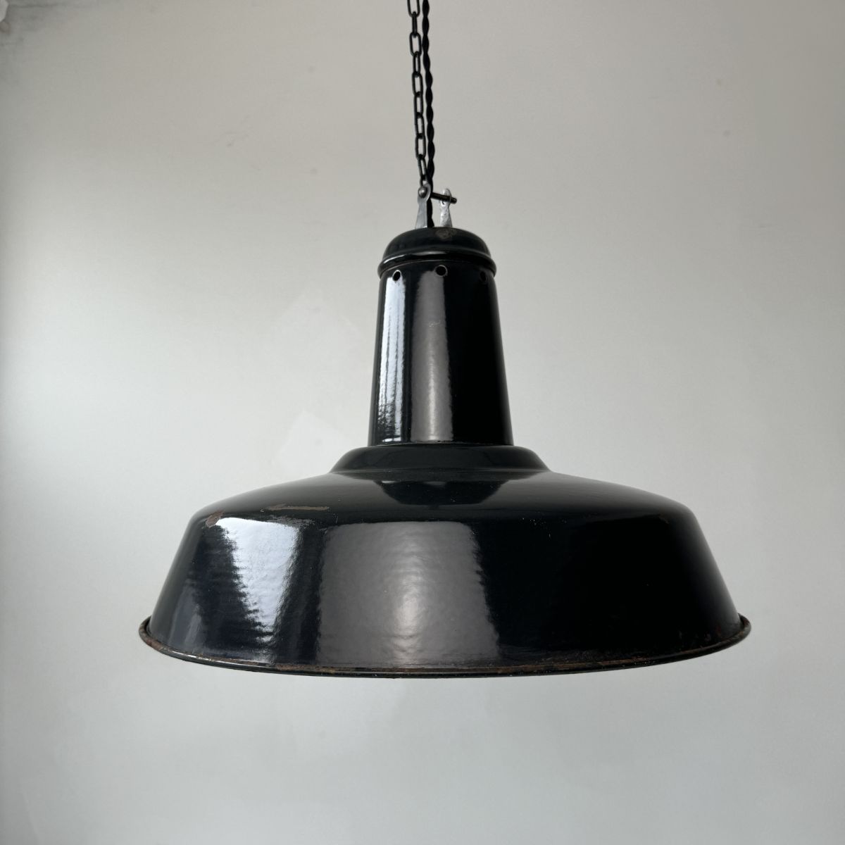 ANCIENNE SUSPENSION INDUSTRIELLE EMAILLEE 41 CM