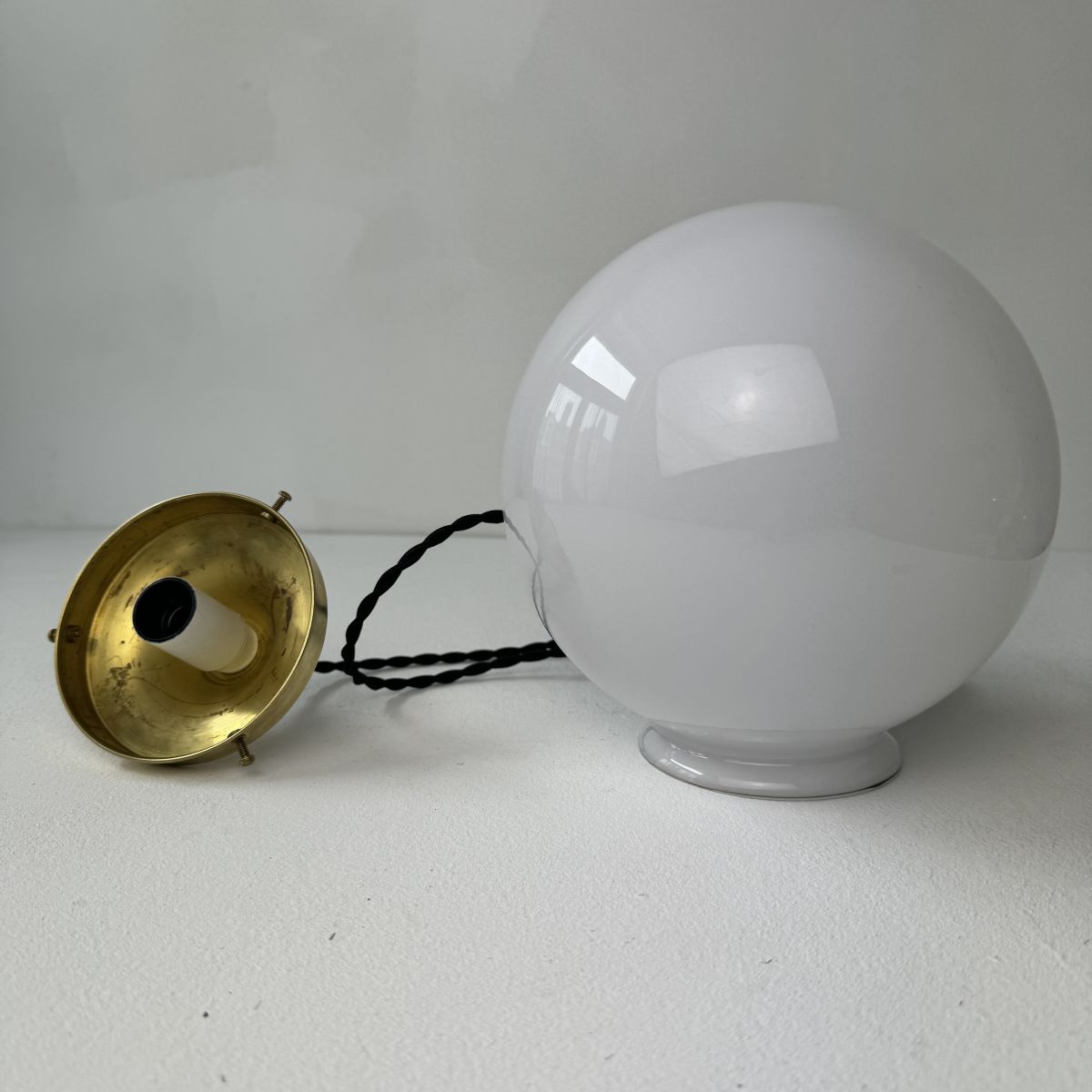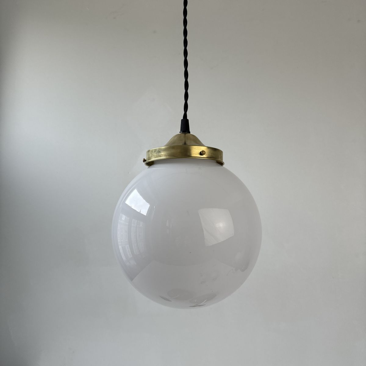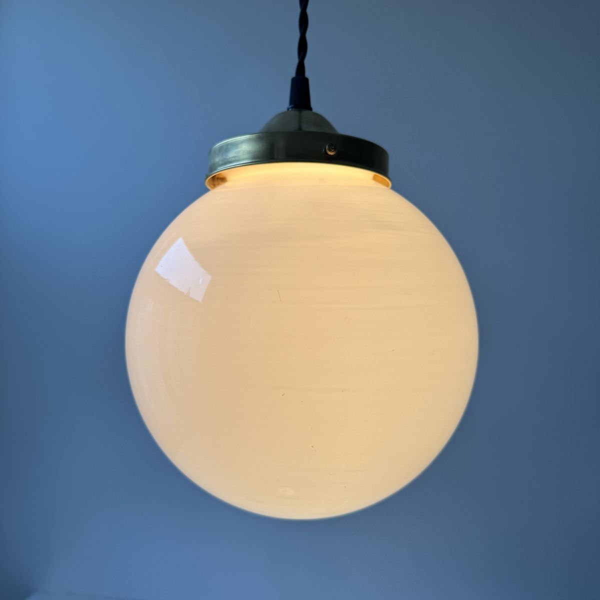 ANCIENNE SUSPENSION RONDE 18 CM EN OPALINE VINTAGE