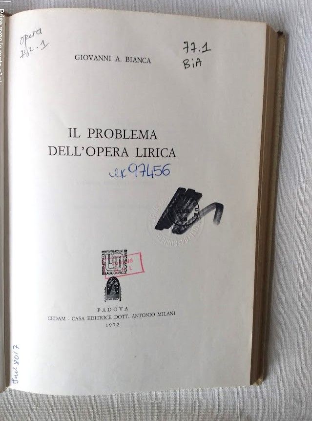 Il problema dell'opera lirica par Giovanni A. Bianca