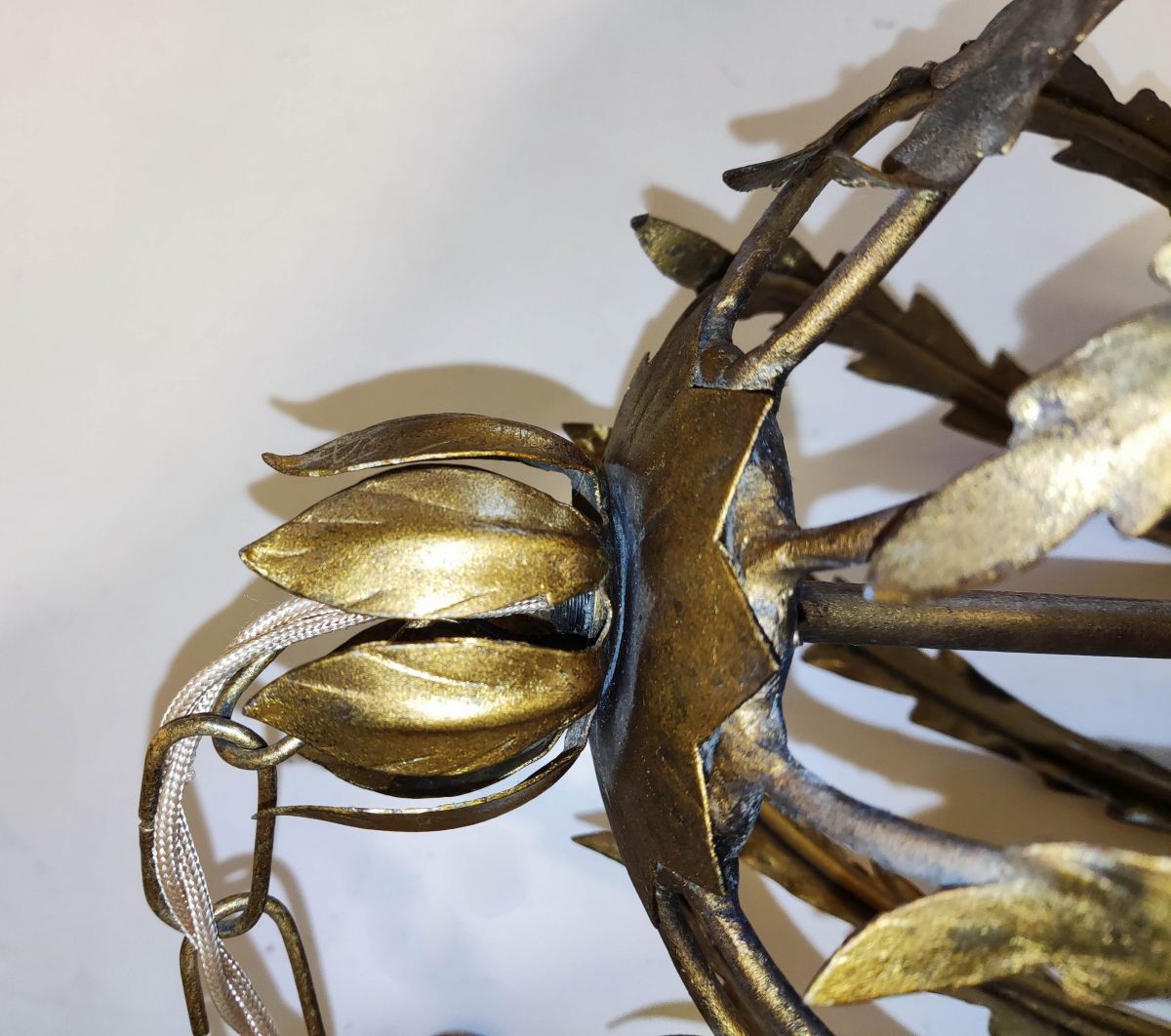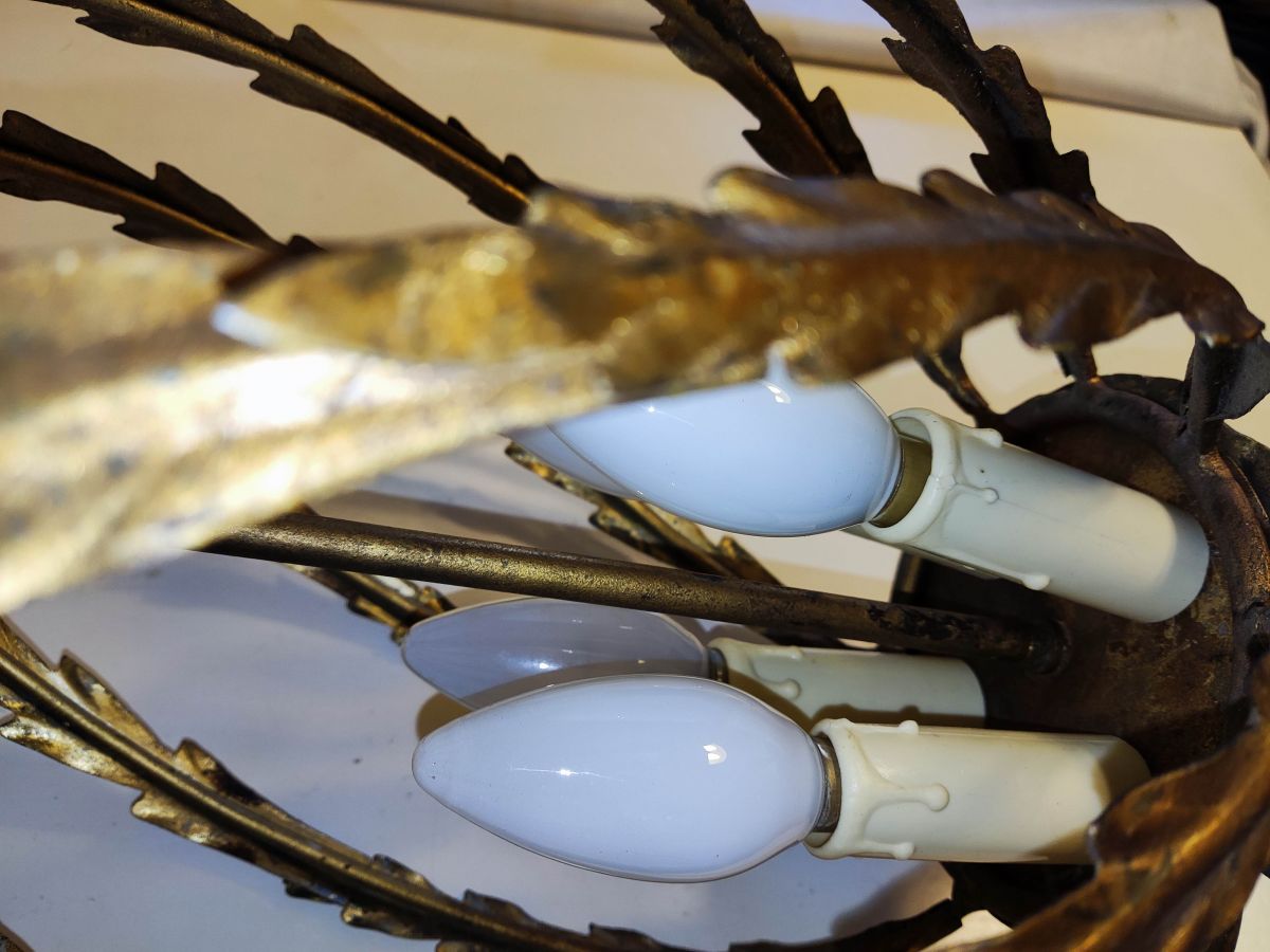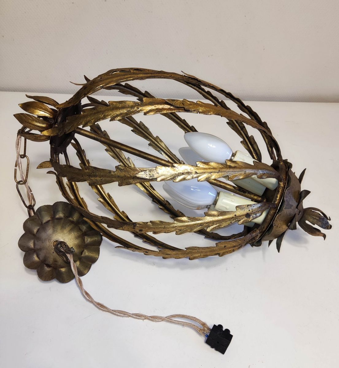 suspension ovale italienne vintage feuilles 4 feux en métal doré des années 50