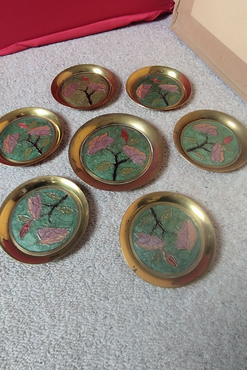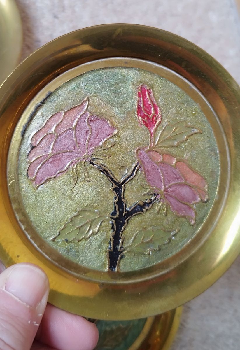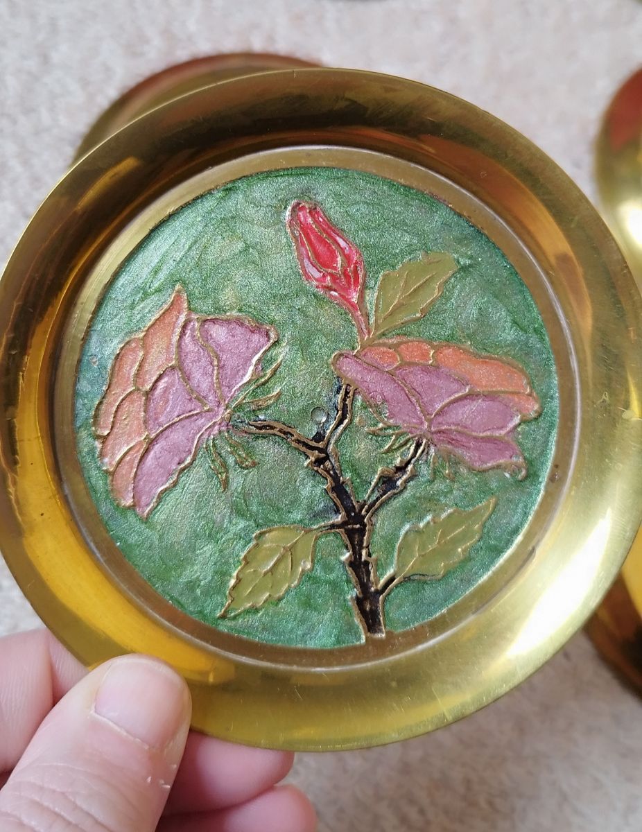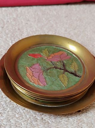 Coupelles sous verres vintage laiton émaillé