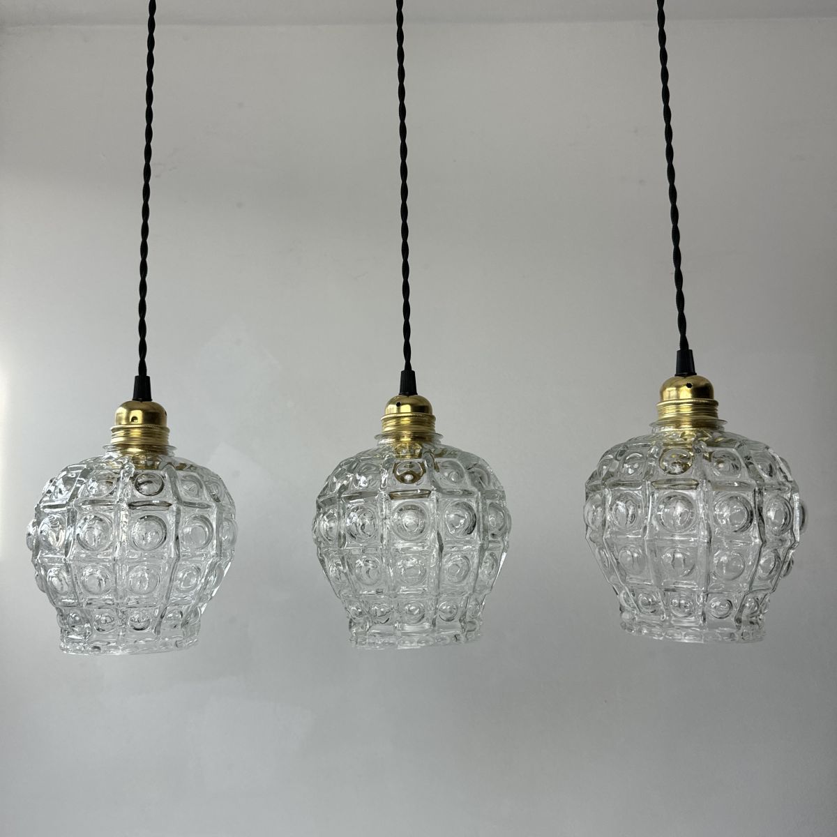 3 suspensions vintage en verre bullé. En bel état général vu leur âge. belle lumière.