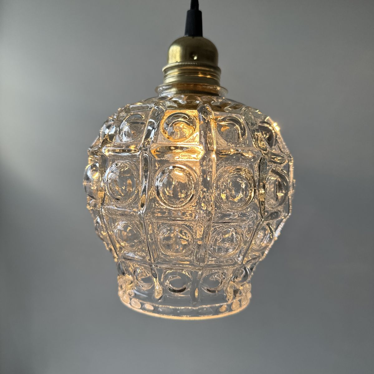 LOT 3 ANCIENNES SUSPENSIONS EN VERRE BULLE VINTAGE