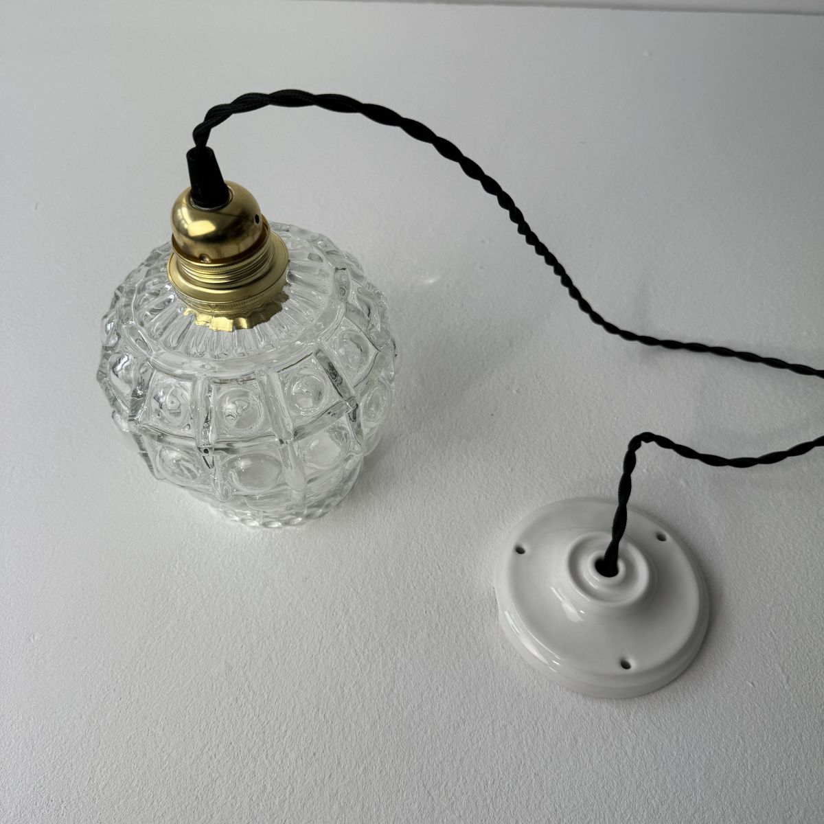 Electricité neuve. Prête à brancher par domino. Douille à vis gros culot (ampoule E27) et rosace de fixation en porcelaine.