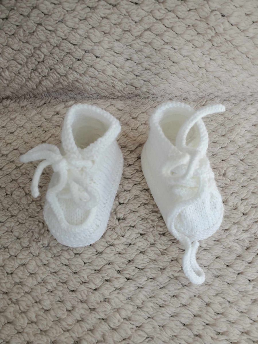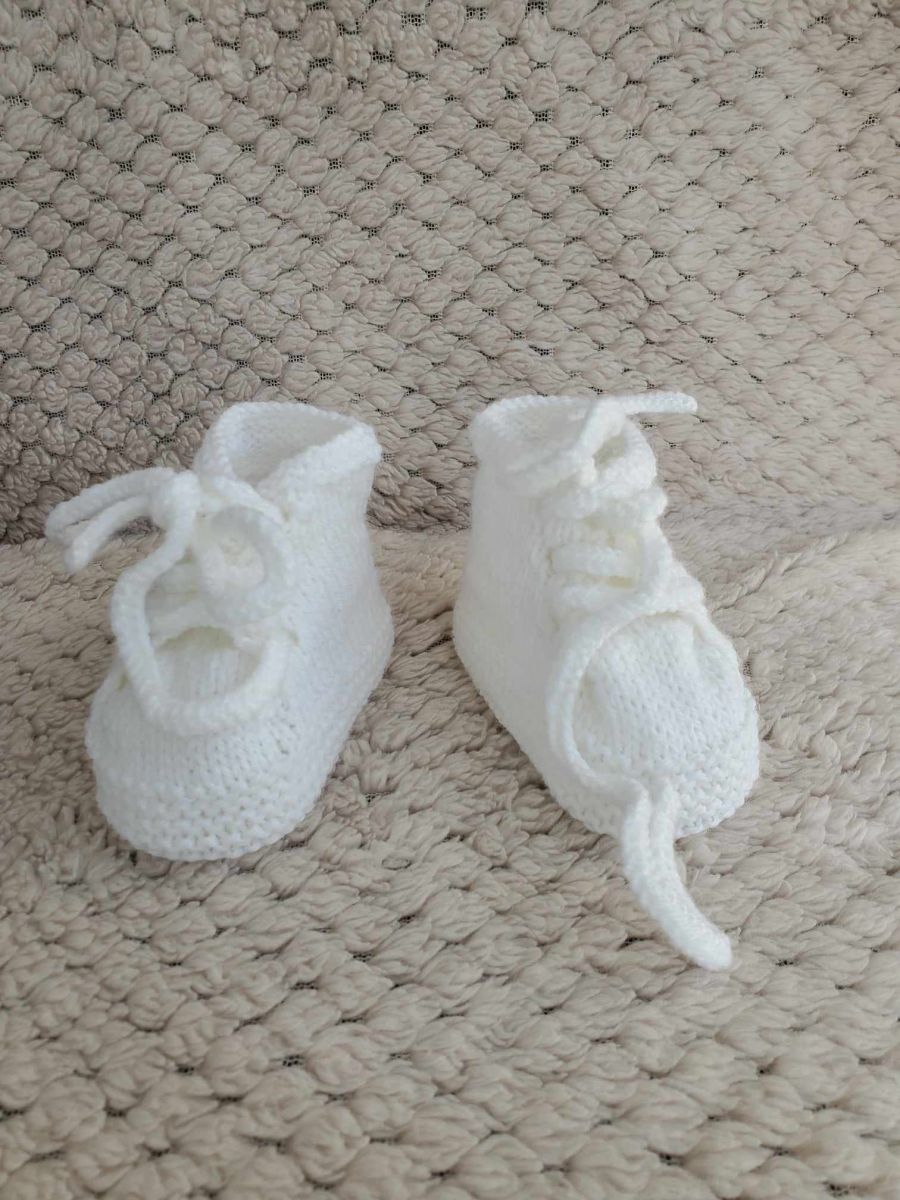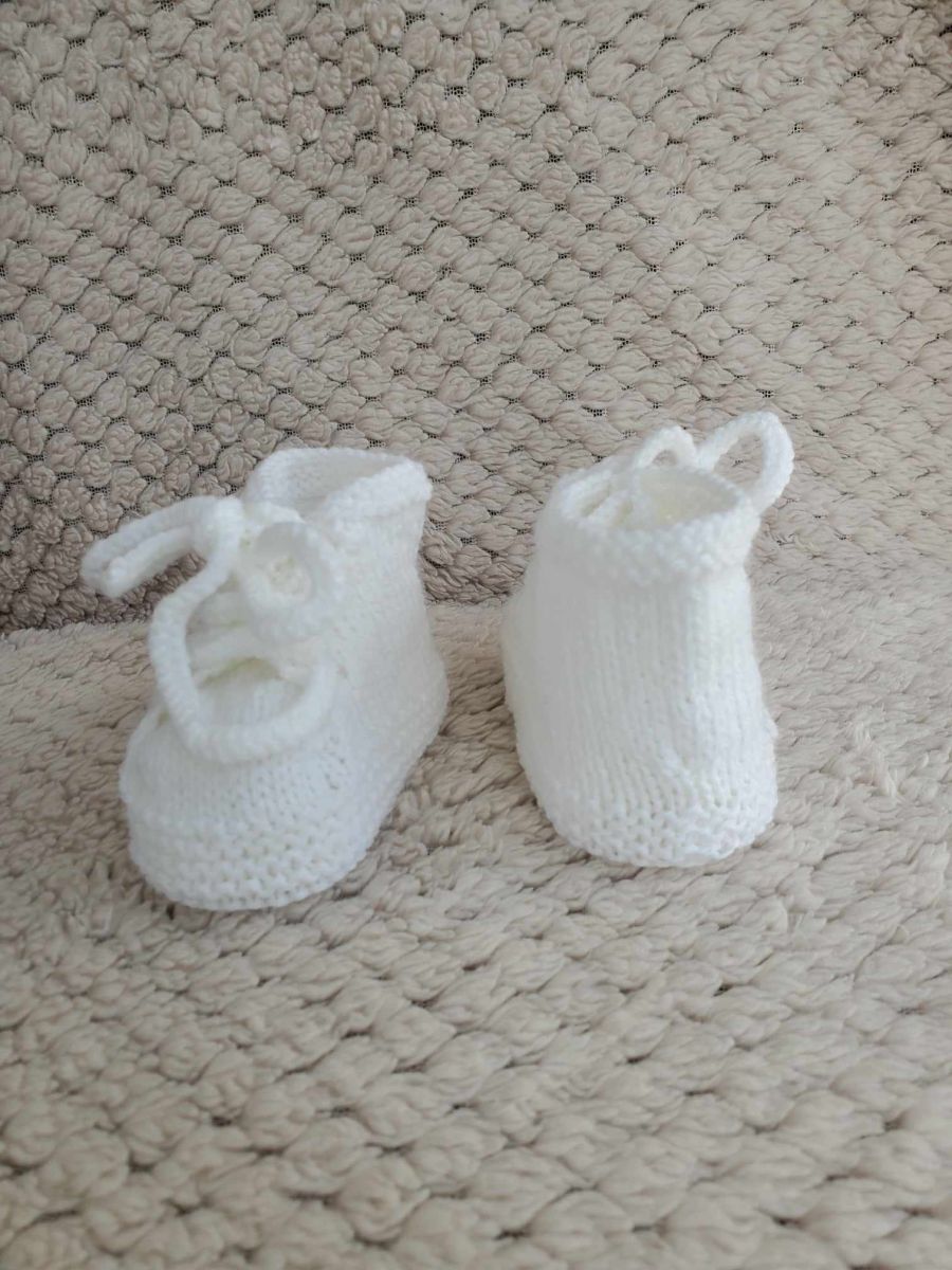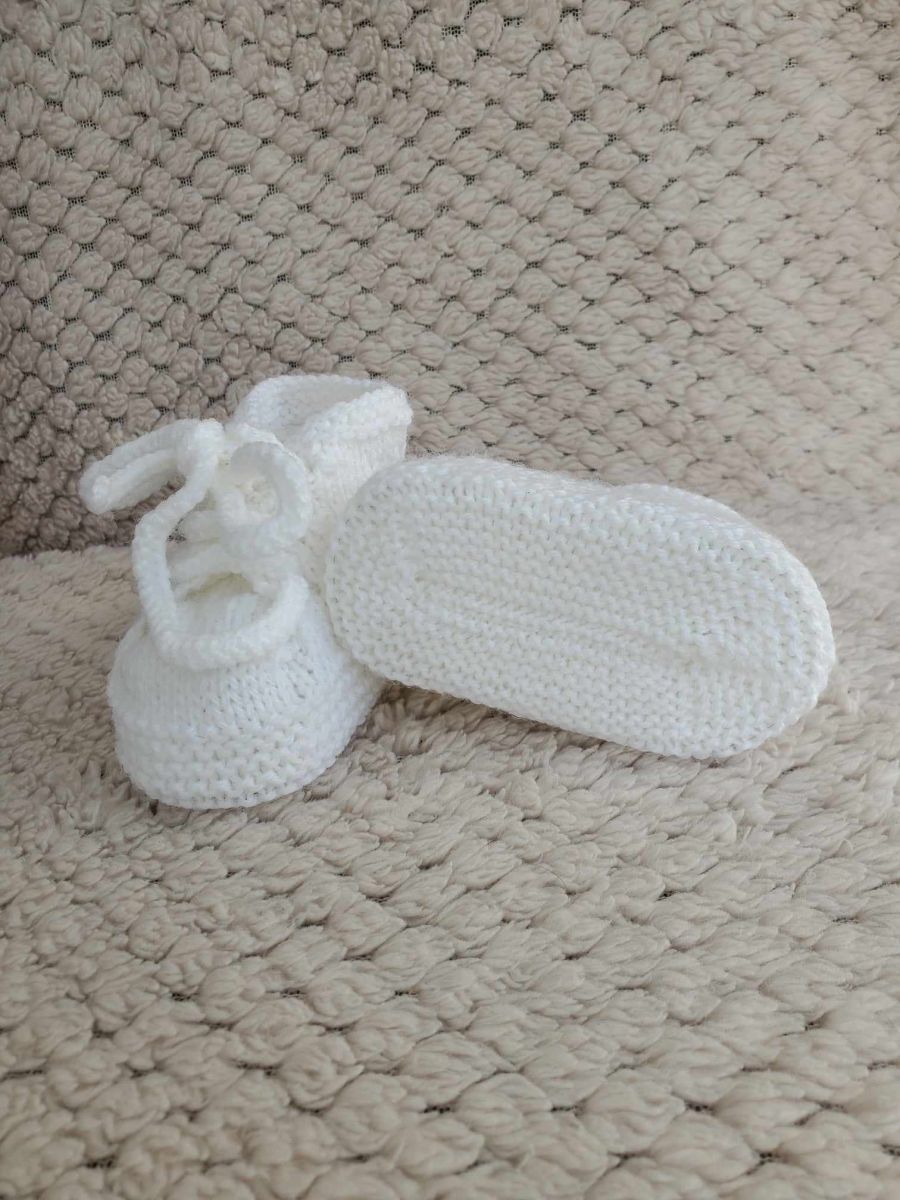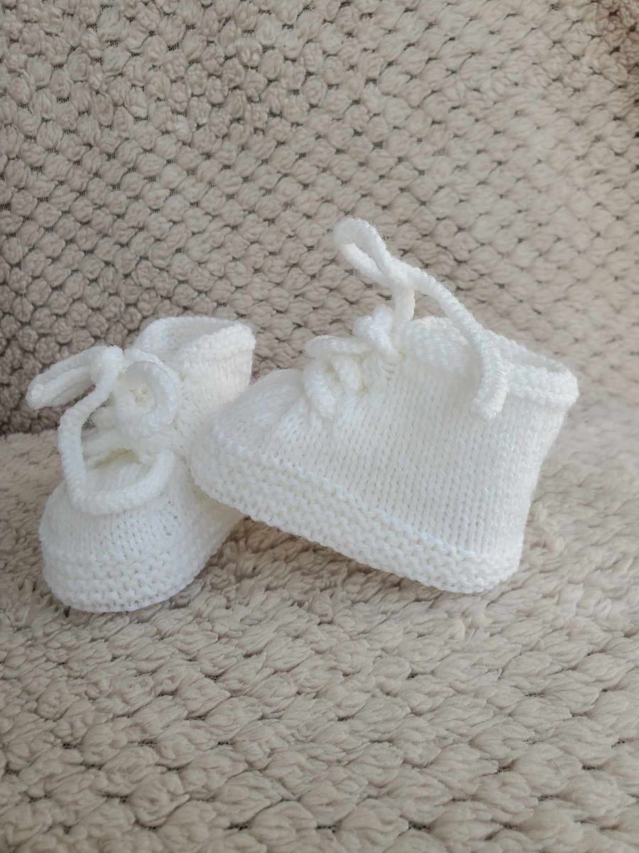 Chaussons baskets Blanche laine layette fait main 0-3 mois