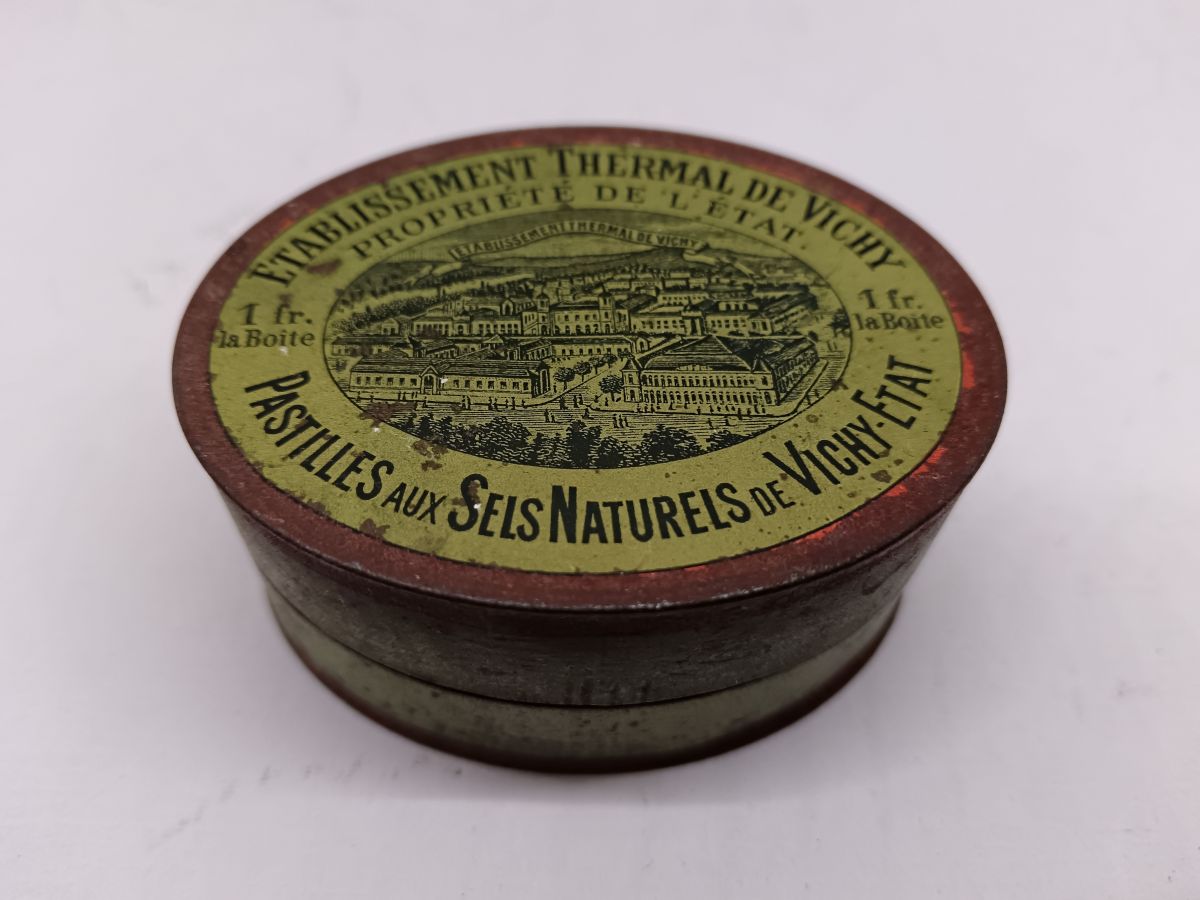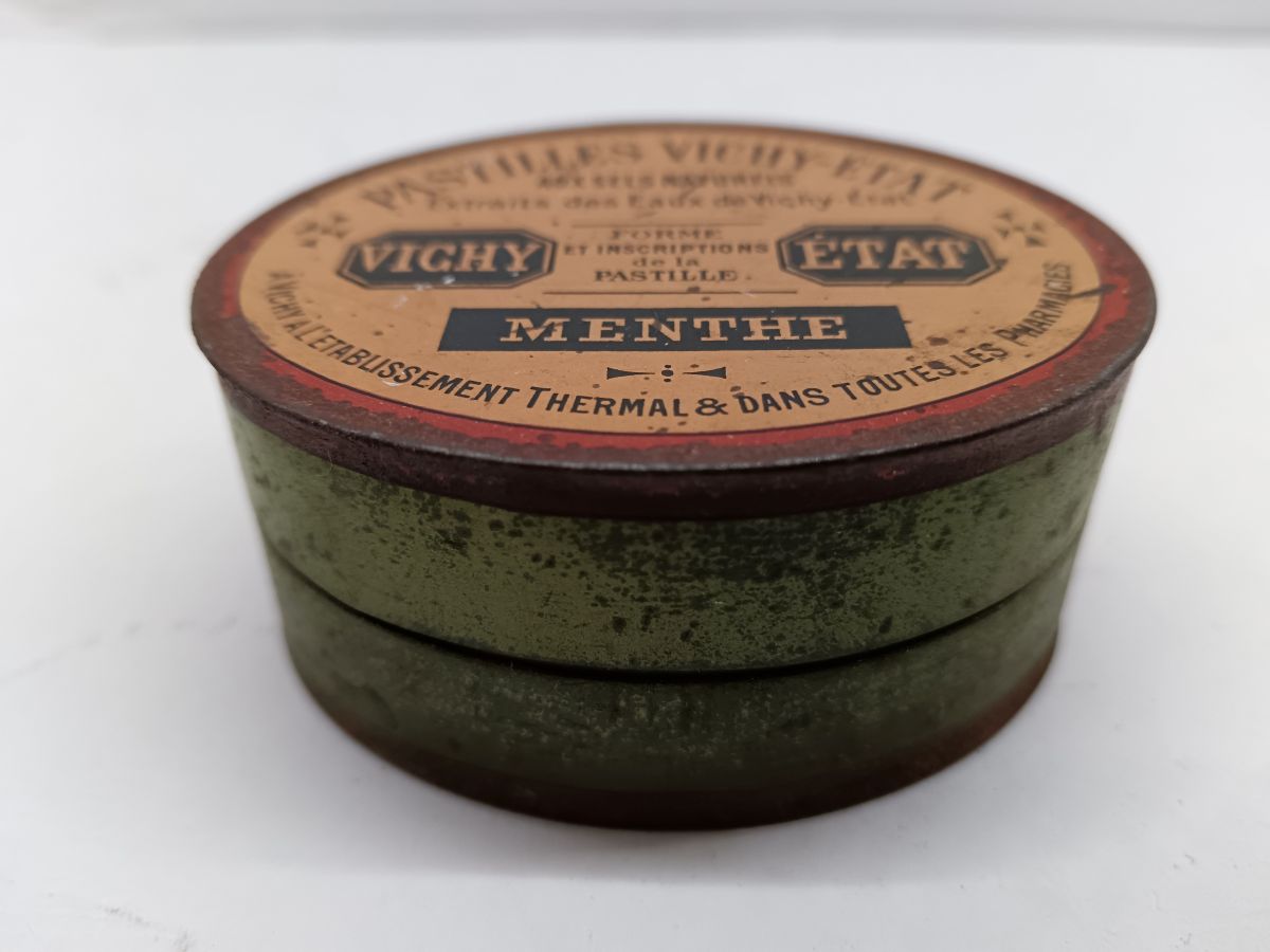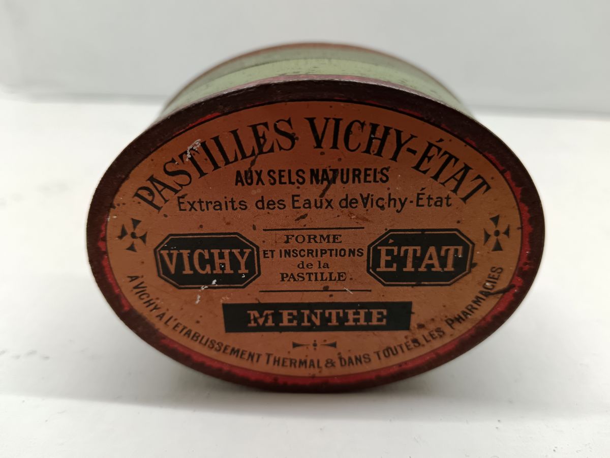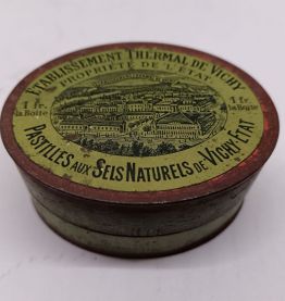 Boîte en tôle publicitaire Pastilles Vichy État, modèle oval