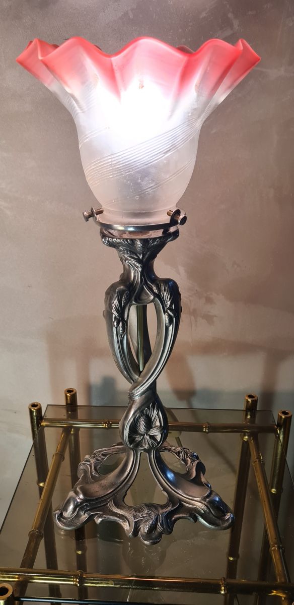 lampe en etain poinçon art nouveau avec tulipe tres fine,