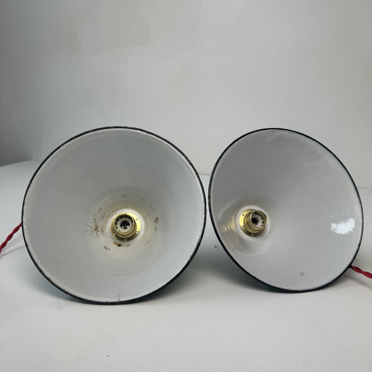 PAIRE D’ANCIENNES SUSPENSIONS INDUSTRIELLES CONIQUES EMAILLE
