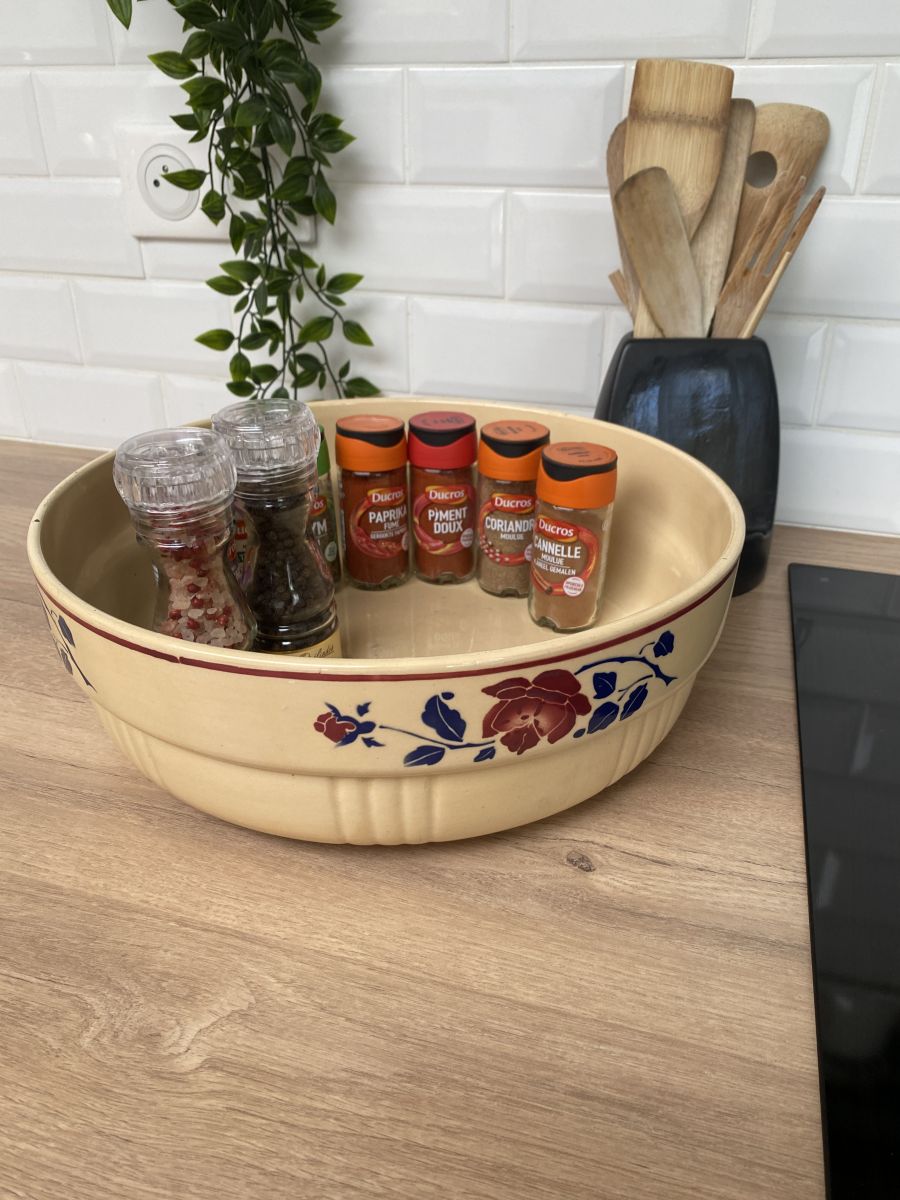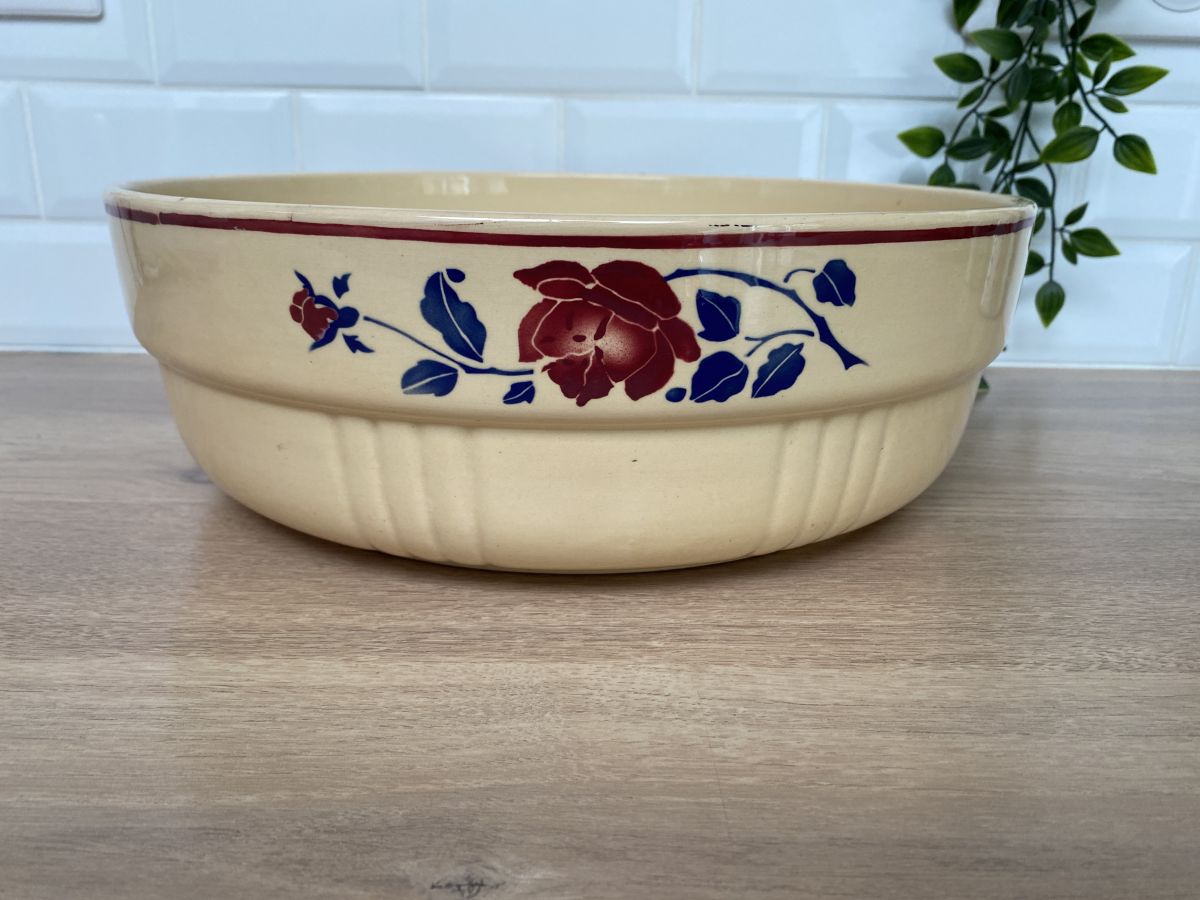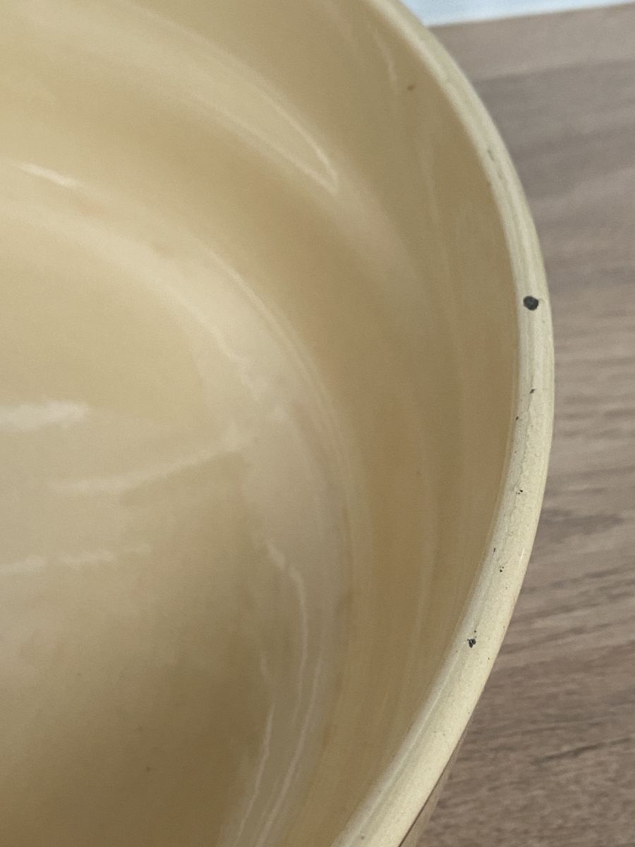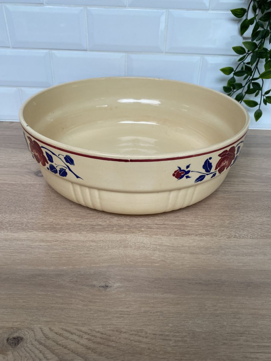 Bassin de toilette en demi porcelaine Badonviller, marquage en fond de 1923. Bon état, les quelques traces d'usage sont visibles sur les photos, pas de fêle. Super en déco dans votre cuisine ou dans votre salle de bain : à détourner en vide poche, contenant produits de beauté, épices, coupe à fruits, saladier ou jardinière. Diamètre 34 cm, hauteur 11 cm, poids 2,1 kg. P65