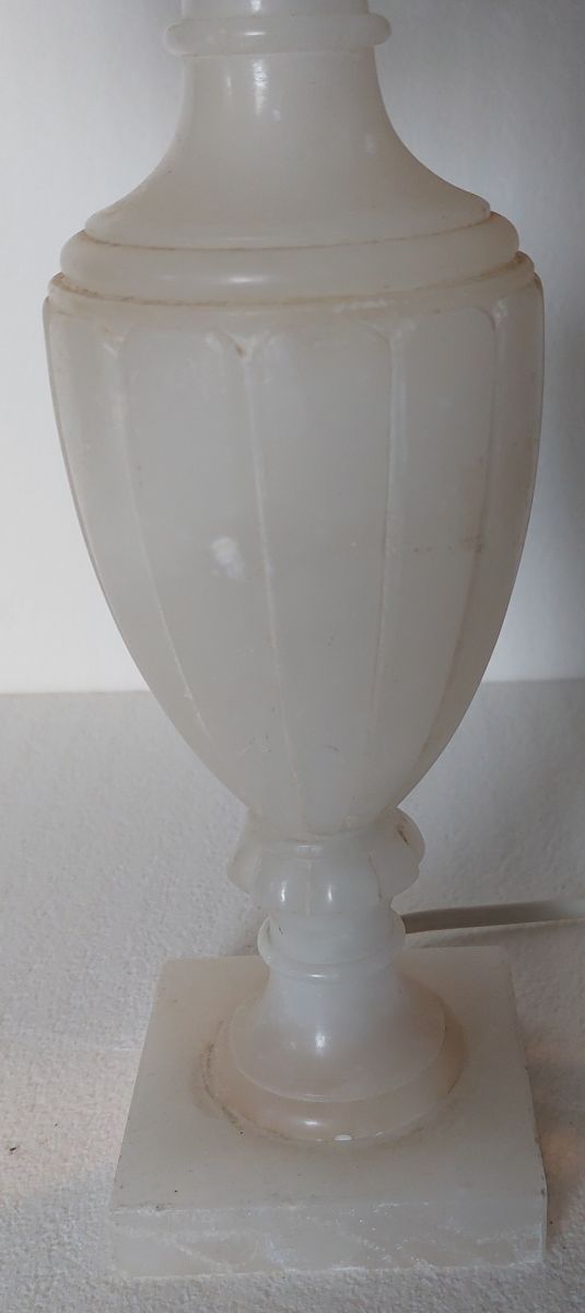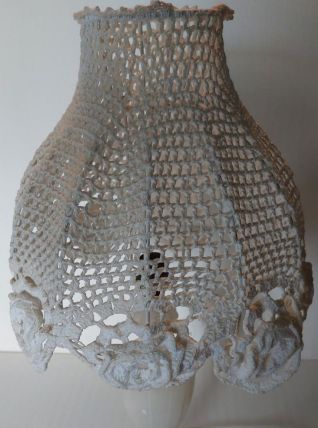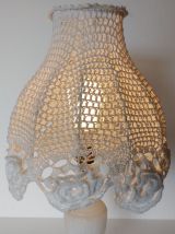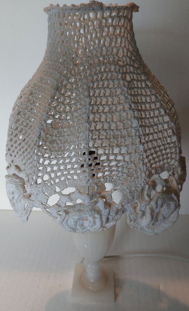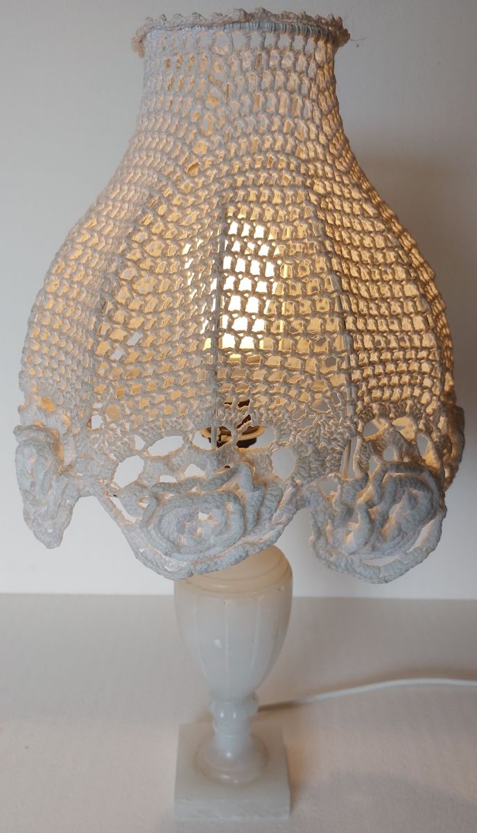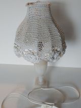 lampe en albâtre et abat-jour en crochet
