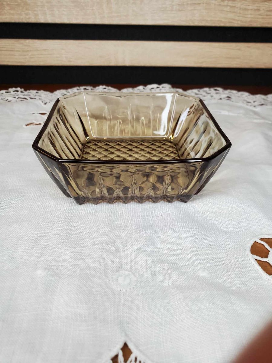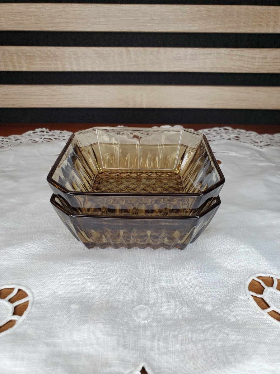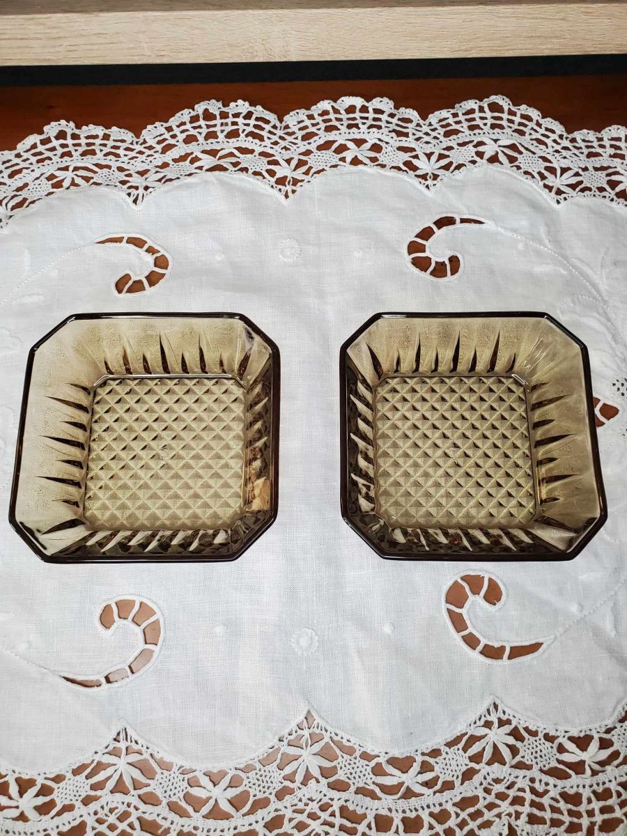 Ensemble de 2 raviers vintage en verre fumé, LEVER