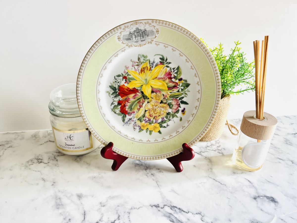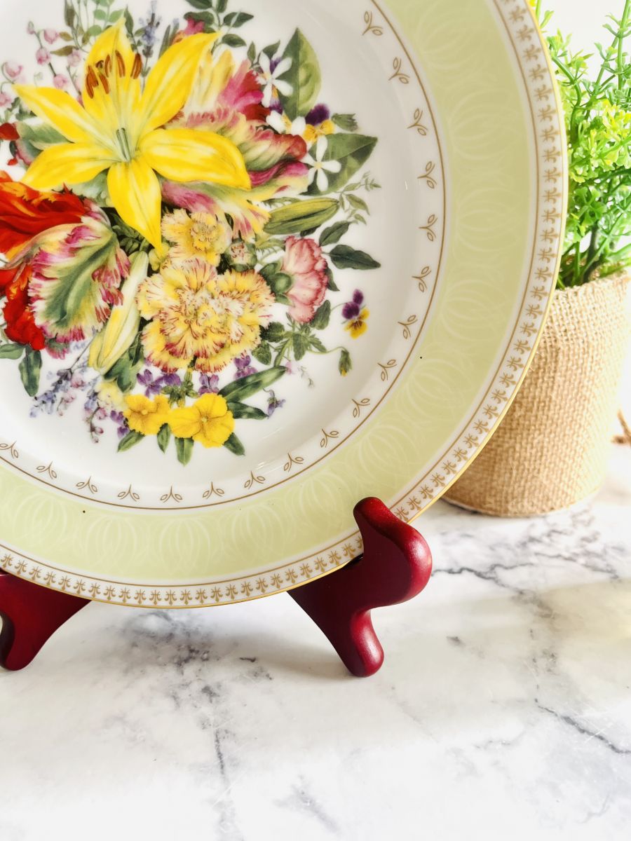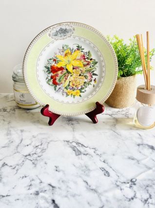 - [ ] Description ; Assiette décorative en Porcelaine, Emission officiel 1995 de la société Nationale d’horticulure de France. Motifs floraux sur le devant avec dorure.