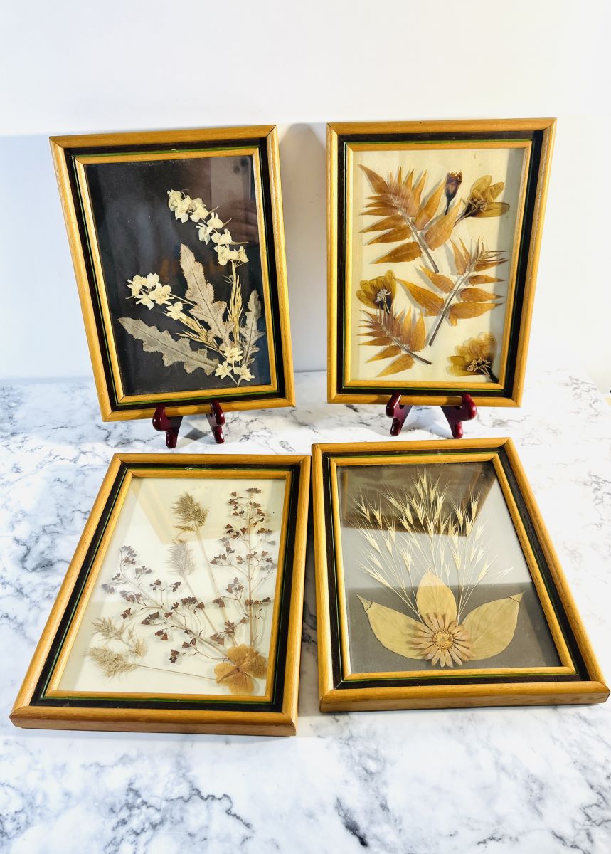 Comprenant des fleurs sechées en très bon état global, chaque cadre comporte une petite accroche au dos.