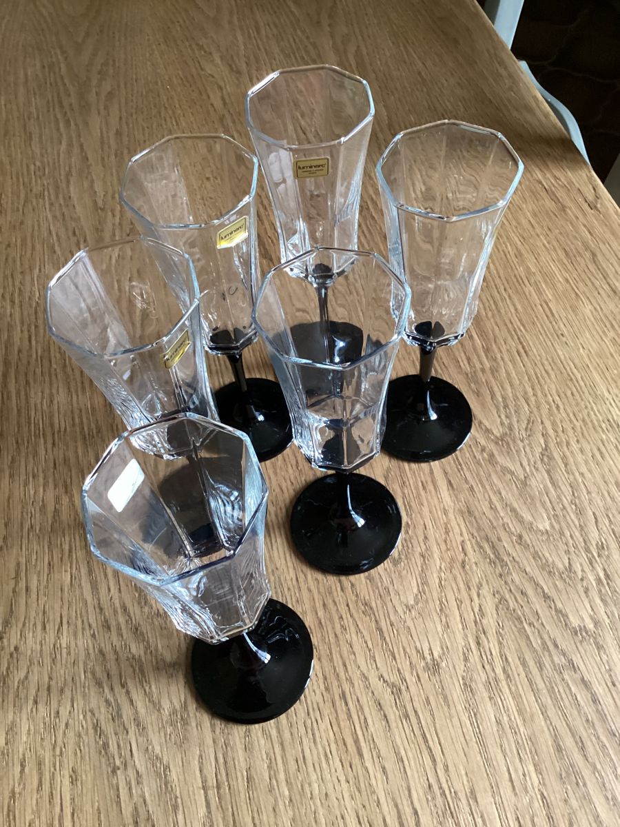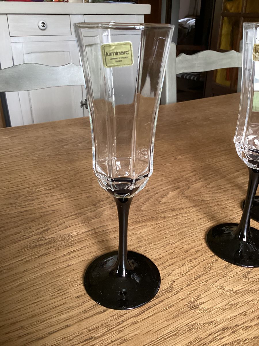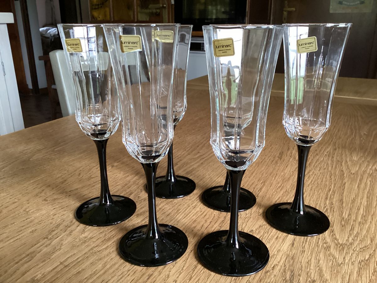 6 flûtes à champagne verre transparent pied noir forme octogonale produit neuf