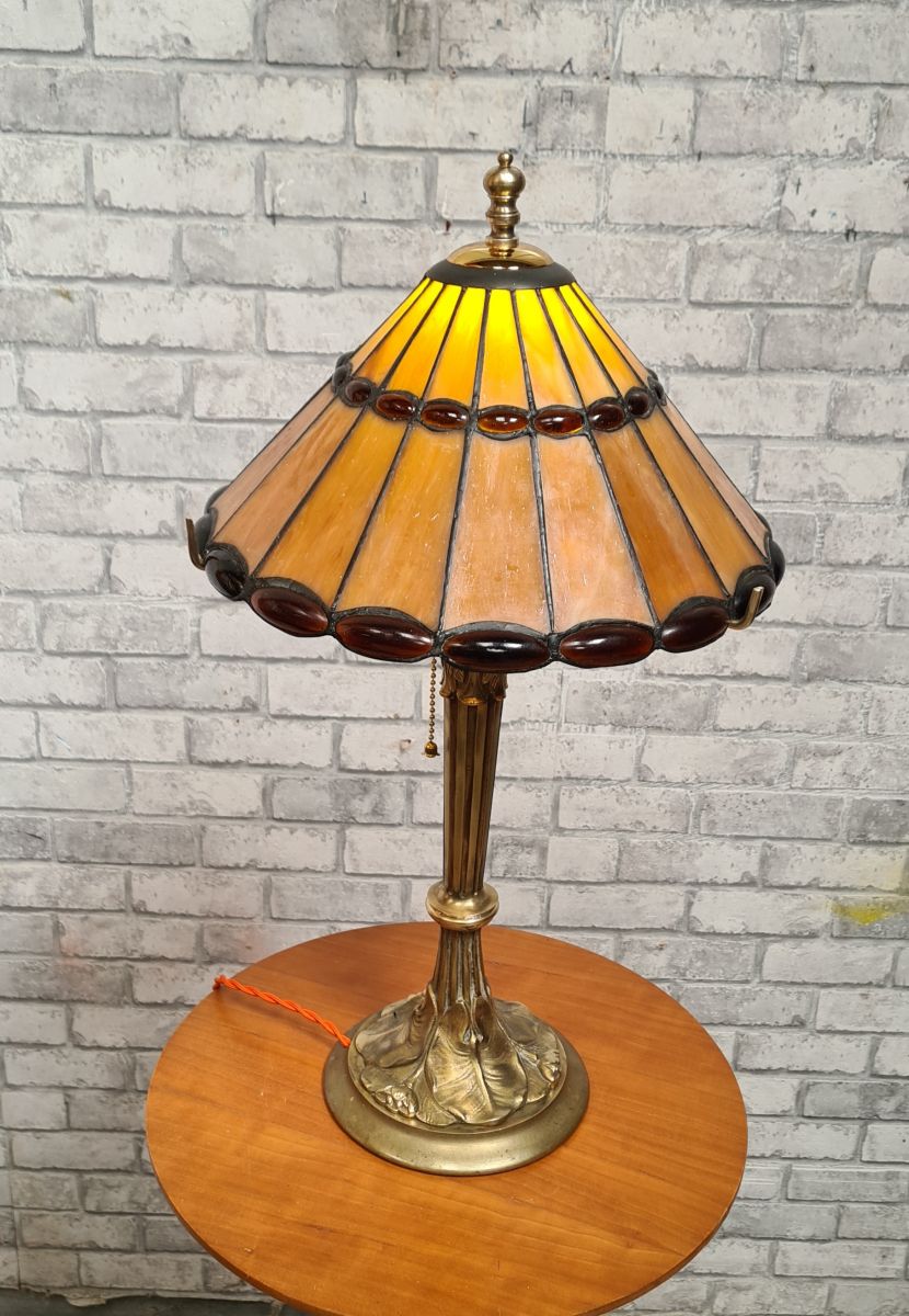 grande lampe bronze massif art nouveau 1900 ,abat jour tiffany 55x30 inter a tirette