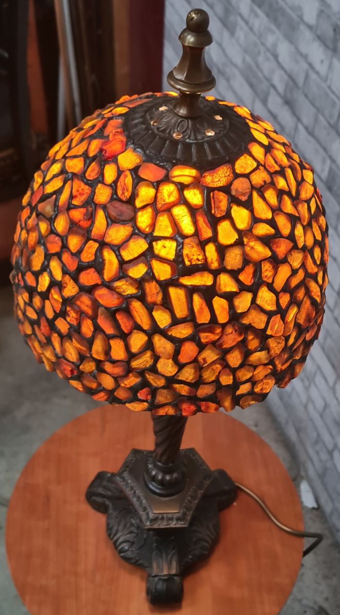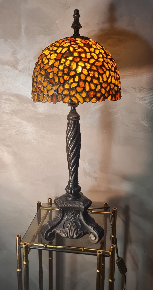 grande lampe americaine art nouveau avec abat jour ambre ti