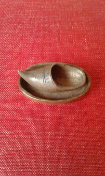 Assiette en porcelaine de Limoges France, décorée de vrais timbres postaux, figurant une pagode et des motifs floraux. Décor asiatique.