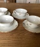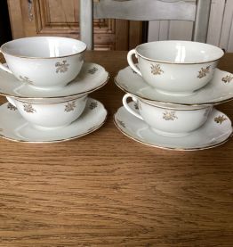 4 tasses et sous tasses porcelaine blanche et or