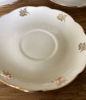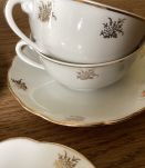 4 tasses et sous tasses porcelaine blanche motifs or. Vintage