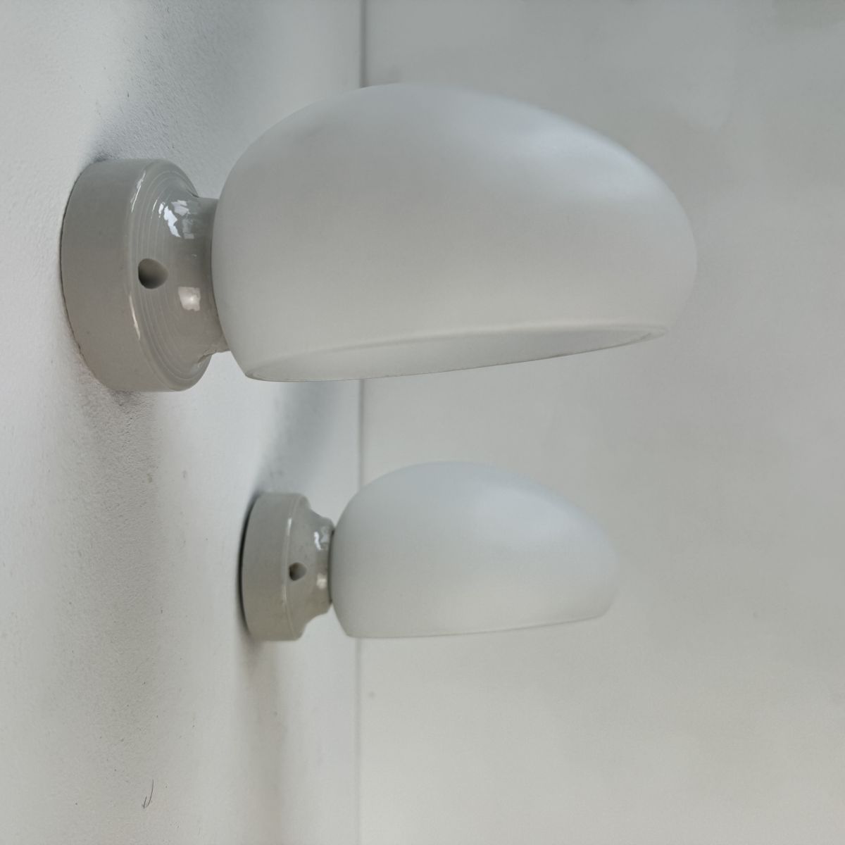 Rare. 2 appliques vintage en céramique et leur abat-jour en opaline. En bel état général.