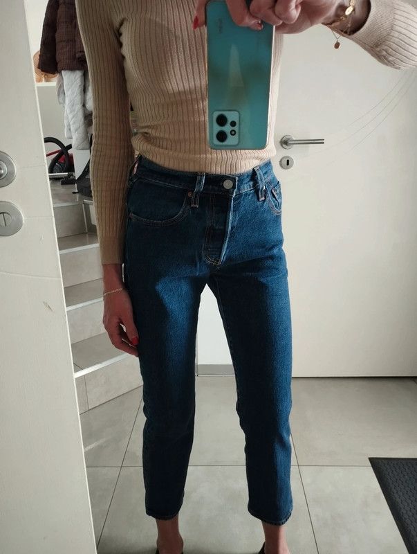 Jean femme Levi's 501 crop bleu foncé W23L26