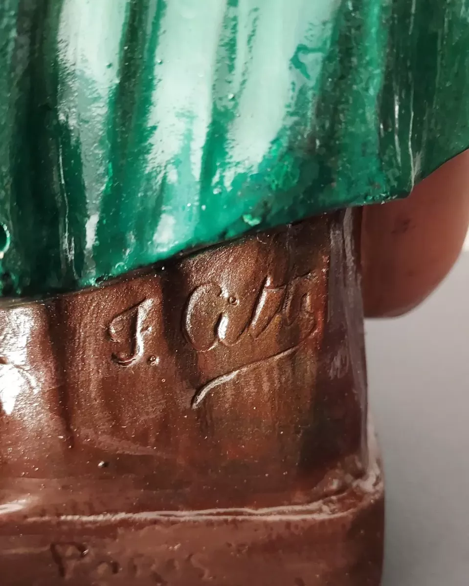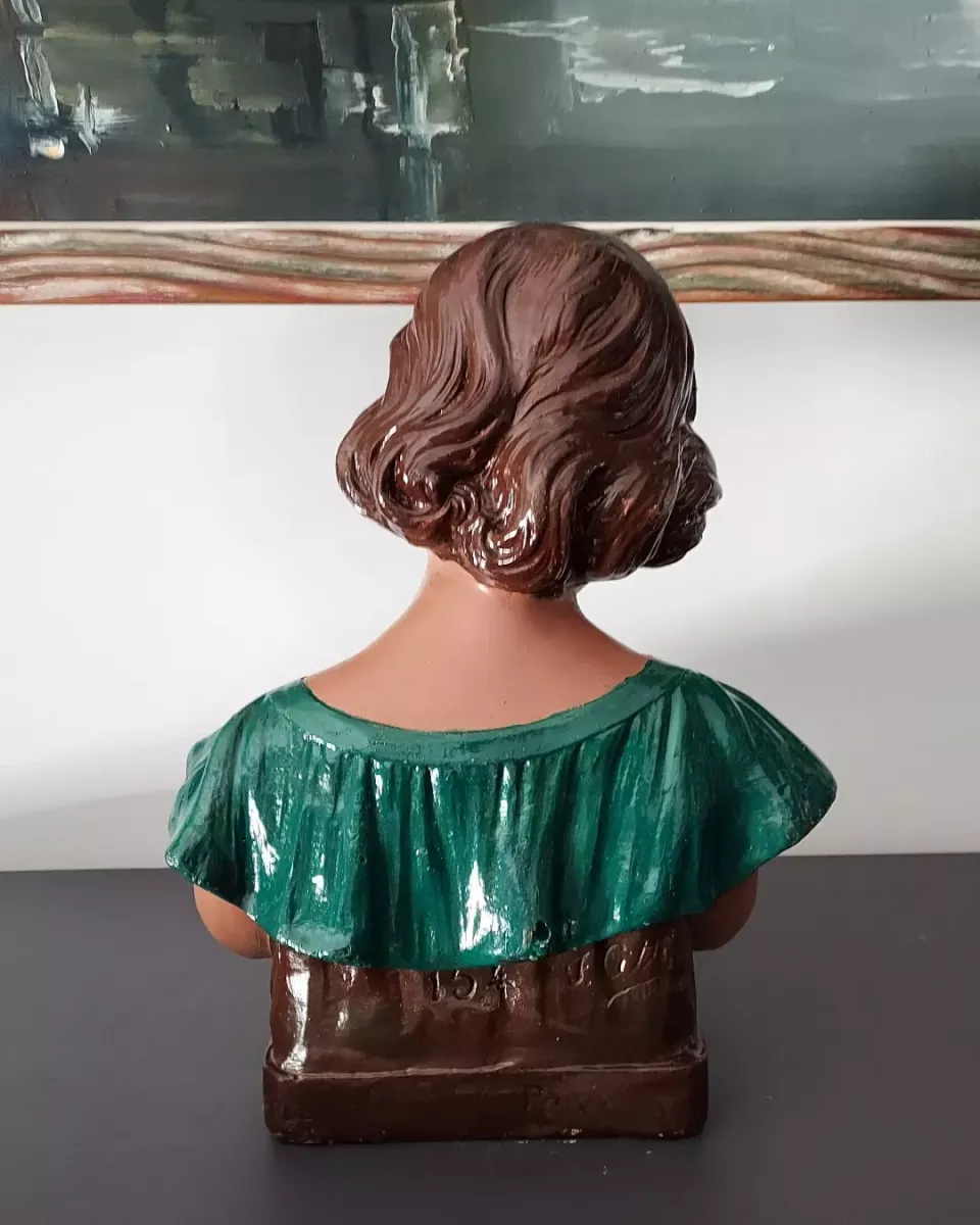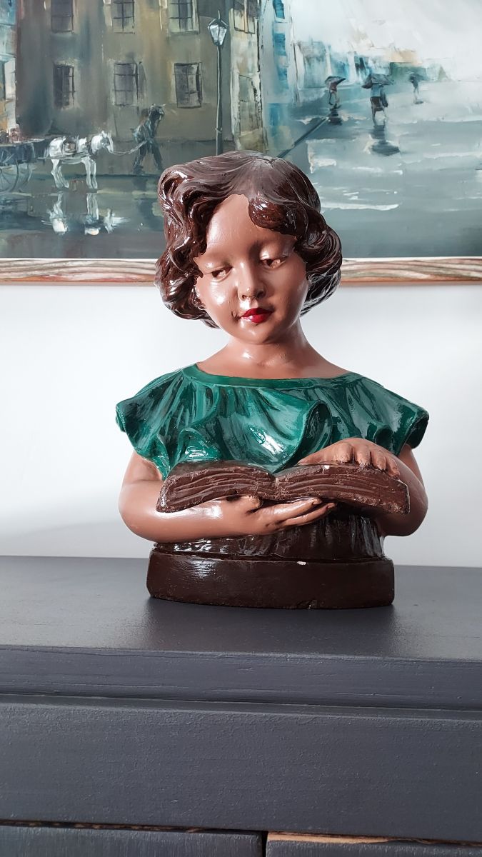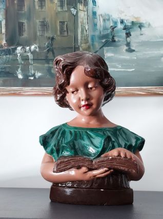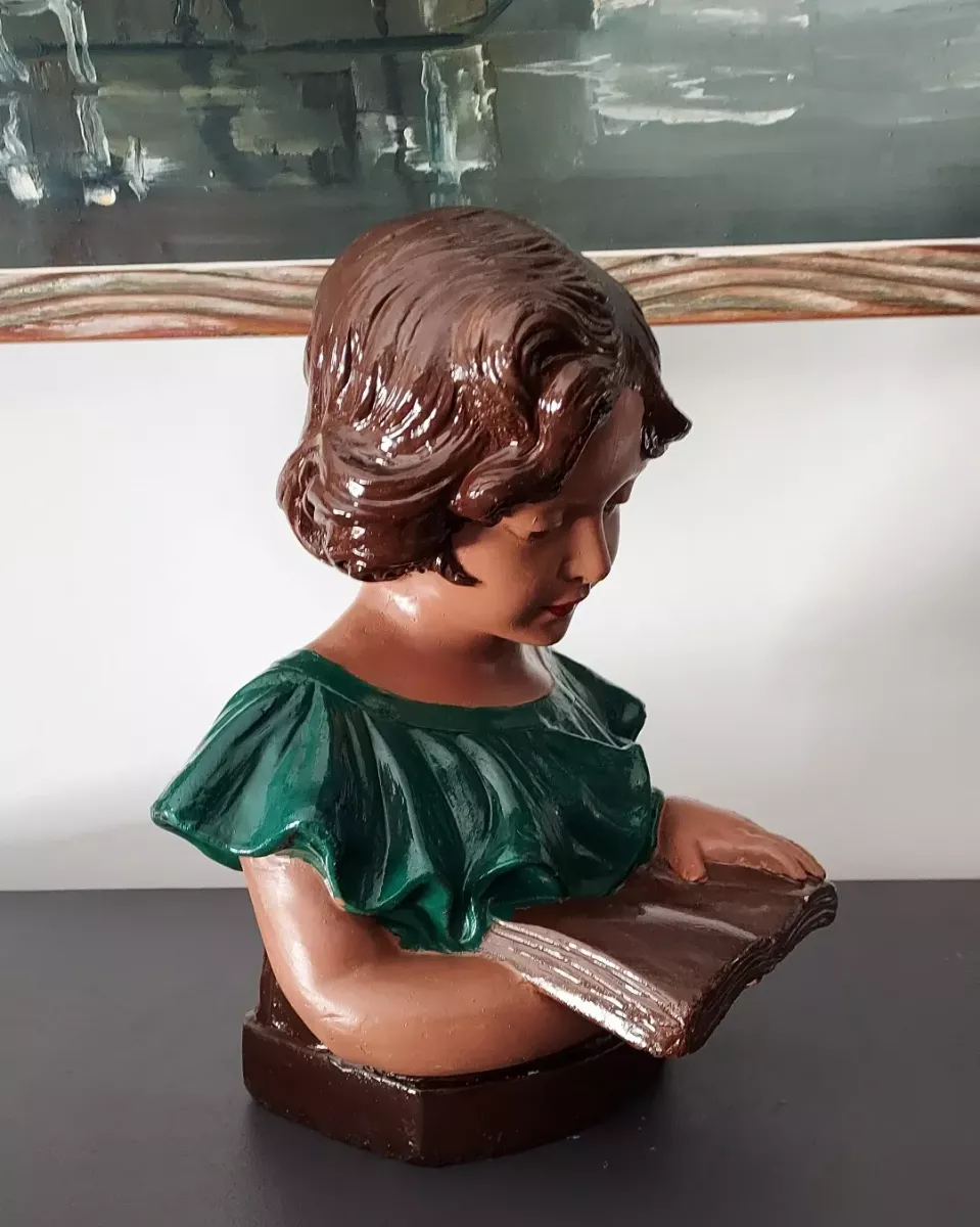 Buste en plâtre d'une petite fille en train de lire, signé F. Citty et numéroté 154. Époque Art Nouveau. En bon état avec quelques traces d'usage (voir photo).