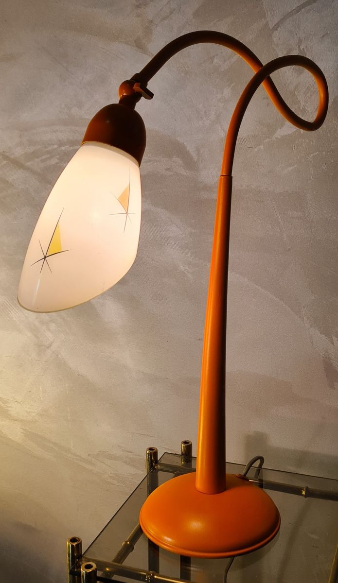 lampe acier peint orange , 1960 a 80,elec ok 47x32 original dising