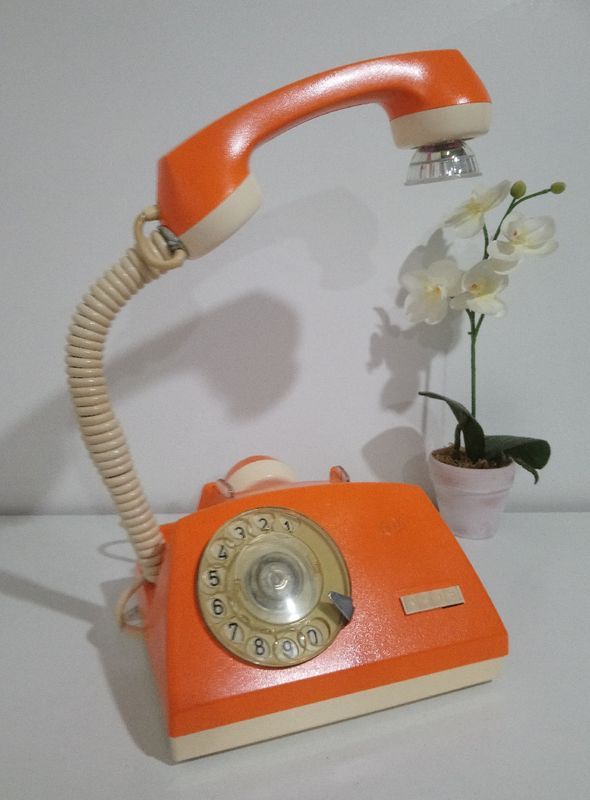 Lampe à poser déco récup conçue sur la base d'un ancien téléphone à cadran Alcatel de 1977.