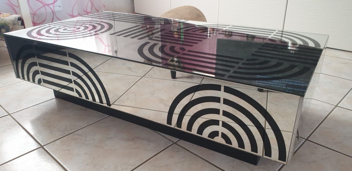 Table salon moderne entièrement miroir .longueur 1m18