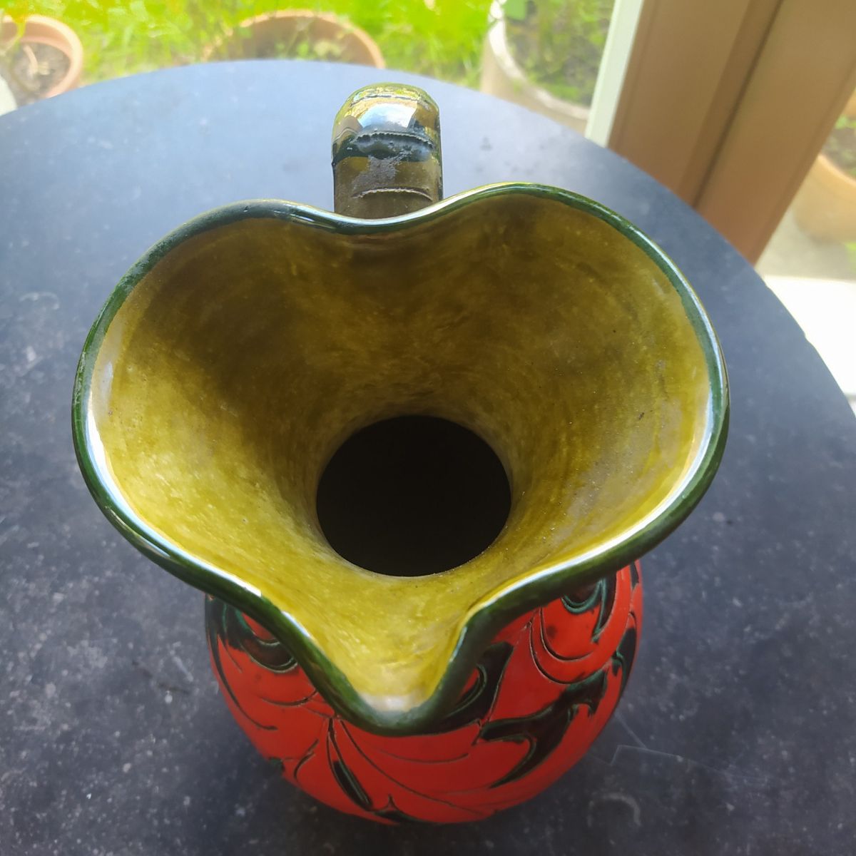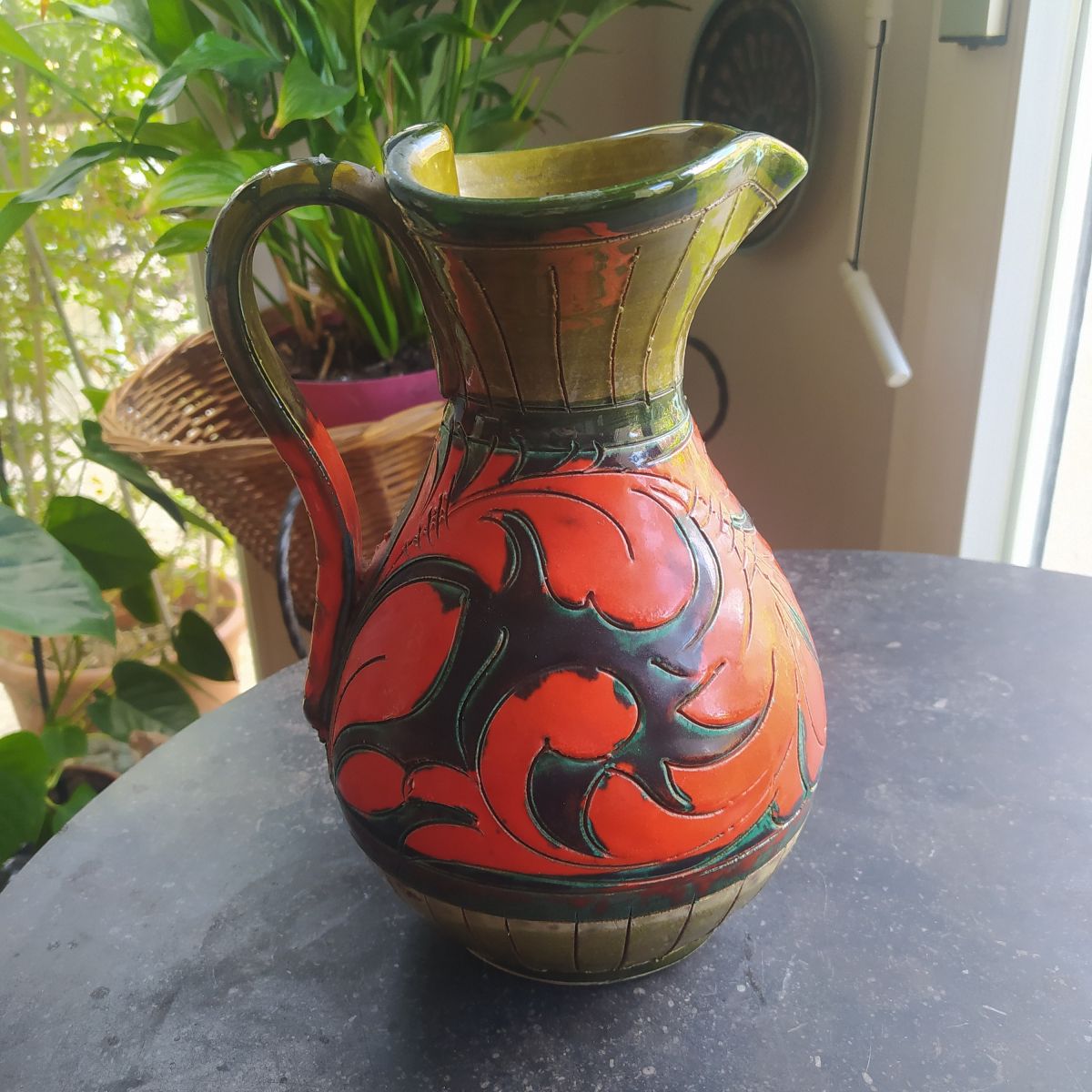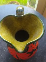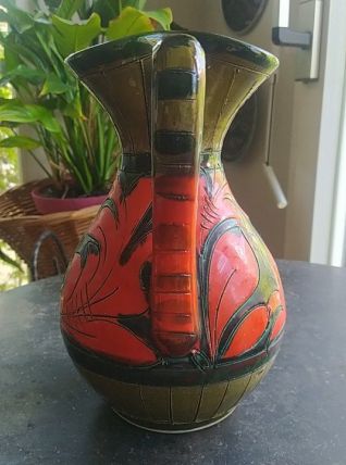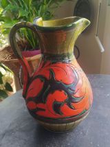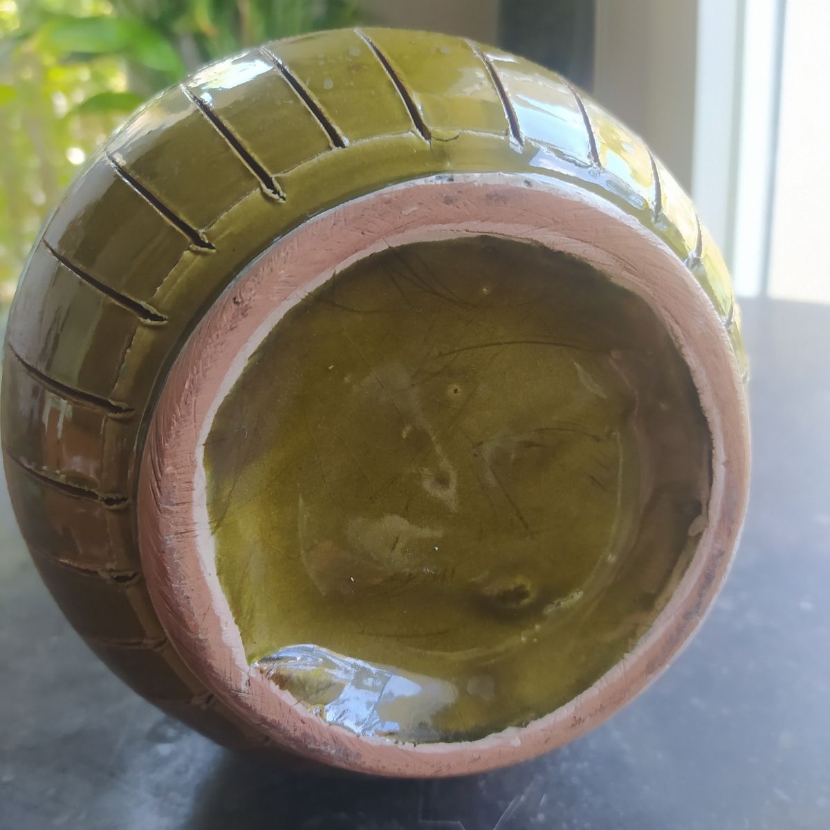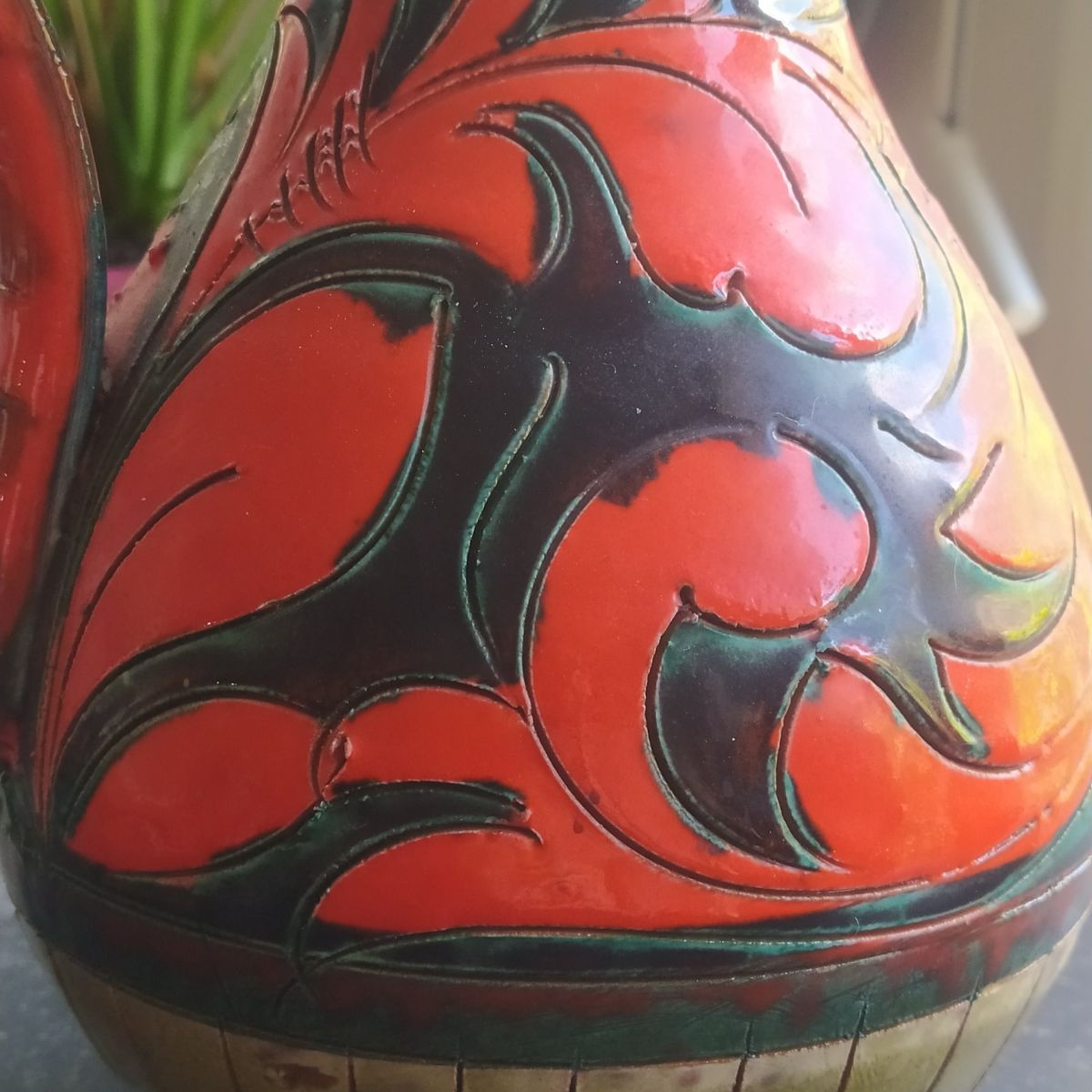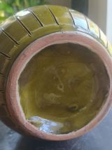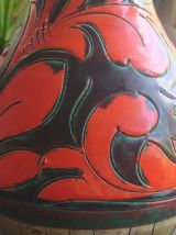 Vase en céramique au décor de feuilles oranges en frise sur fond vert incisé attribué à fratelli fanciullacci.